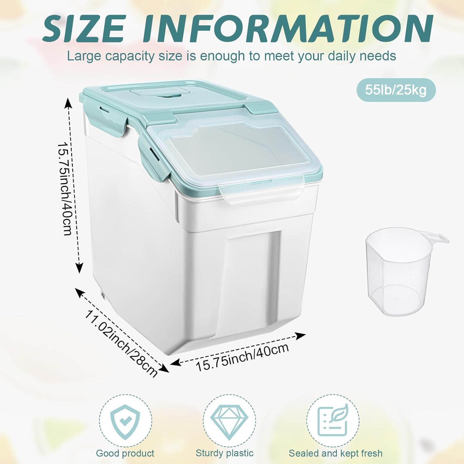 • What You Will Receive: you will receive 4 pcs blue rice storage bins with cup, each measures 15.75 x 11.02 x 15.75 inches/ 40 x 28 x 40 cm, can hold up to 25 kg/55 lbs of rice and meet the daily needs of family, for holding flour, sugar, rice, nuts, beans, snack, cereal, bread, corn, pasta, herbs, pet food, soybeans and etc