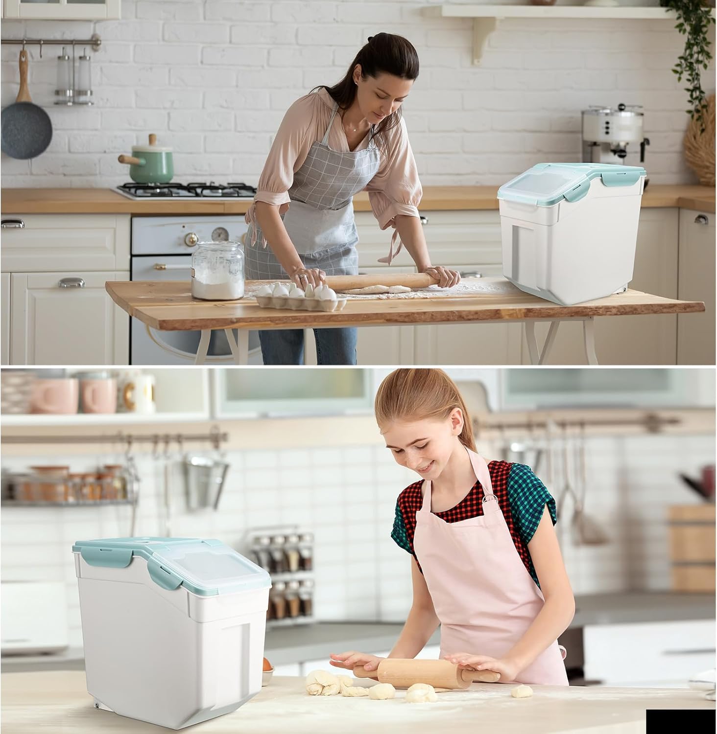 • Convenient to Move: flour storage containers have hidden rollers on the bottom, you only need to lift the front to move it easily, making it a convenient addition to any kitchen; The handle on the side of the container allows you to easily carry, reducing burden and saves time