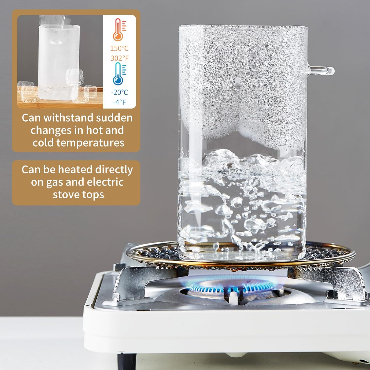 • Size And Capacity: This glass Kitchen Canister, capacity: 39oz, size: height: 6.1in, bottom diameter: 3.9in, square design, large diameter, very convenient to take food and clean, and it can be directly used for heating by an open flame. It should be noted that when heating, please remove the lid and spoon. The product is made of glass, so there may be a 3%-5% chance of damage during shipping. If you find any damage, please clean it up and contact us