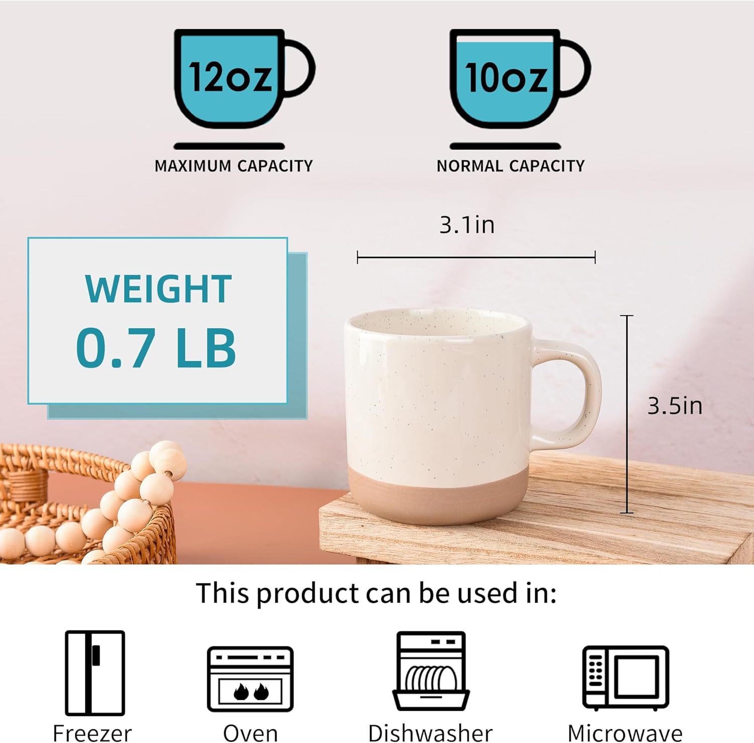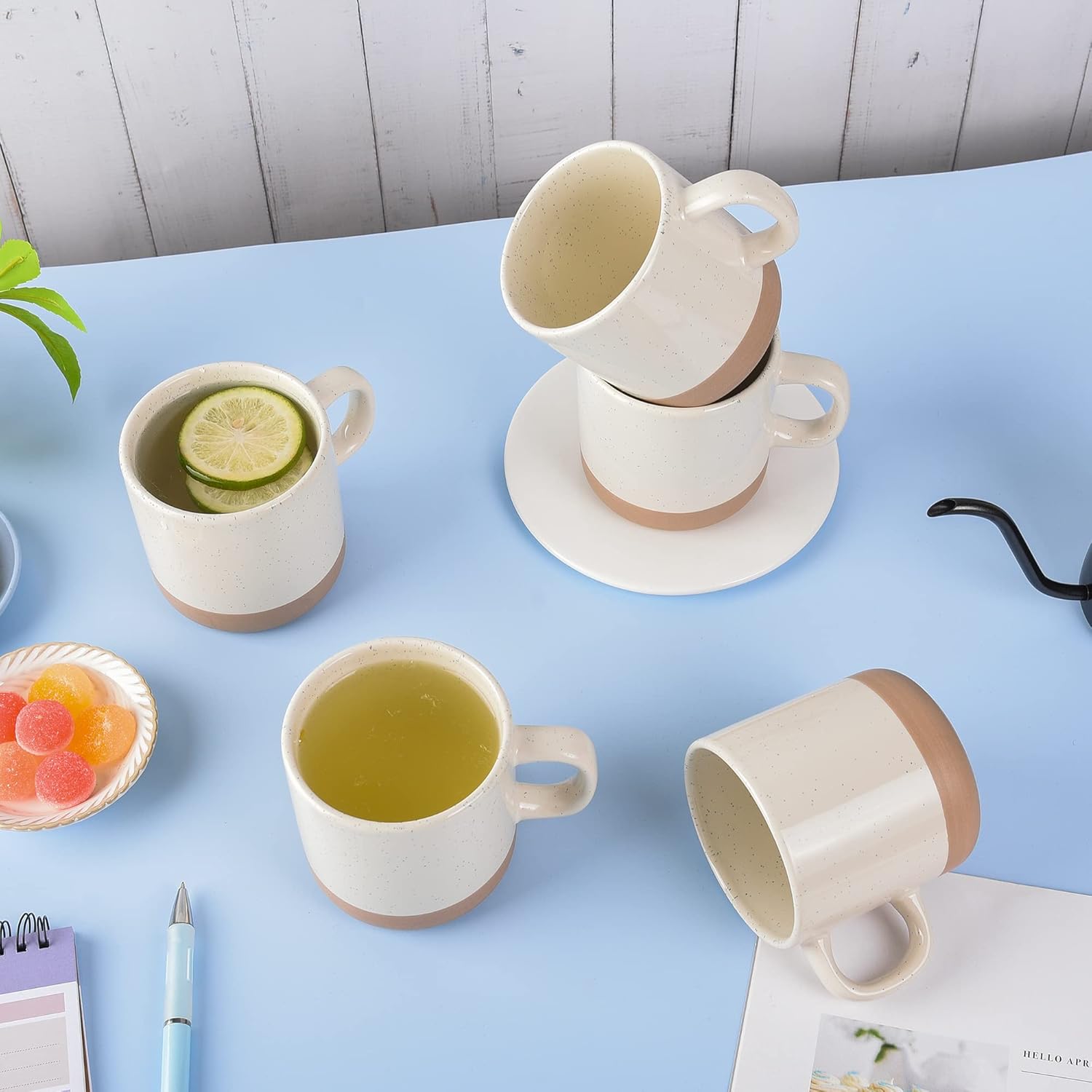 12oz Coffee Mug Set for 6, Tea Cups with Handle for Coffee, Tea, Cocoa, Milk (Cream)
