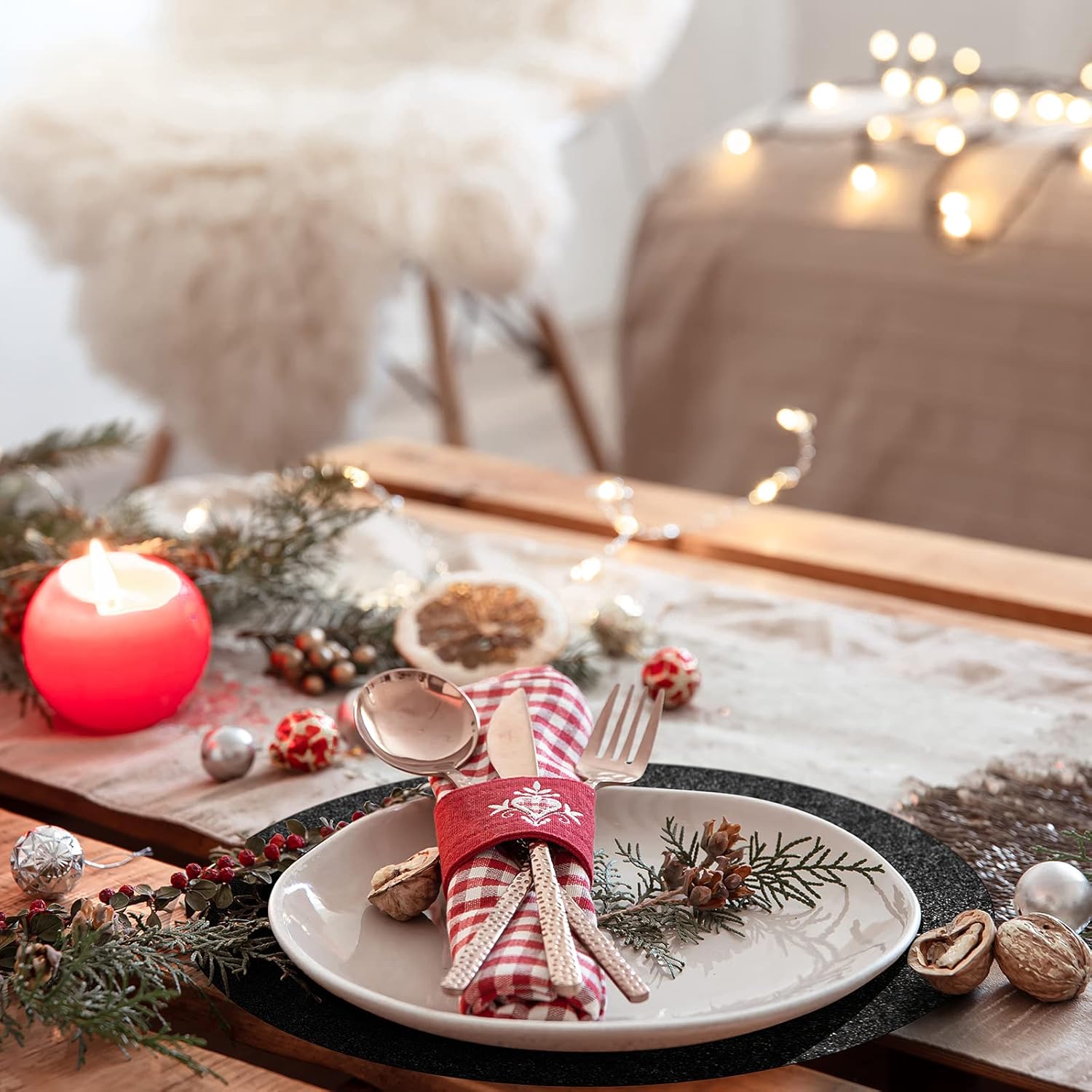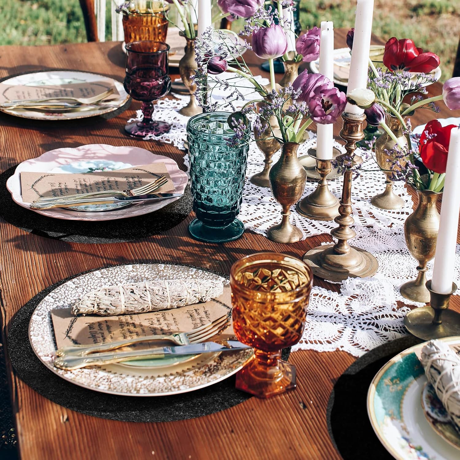 • Glitter surface: our black placemats are decorated with many glitters, which is shining and full of exquisite feeling, easy to match event styles and make more eye-catching, will add a lively touch to your dining table