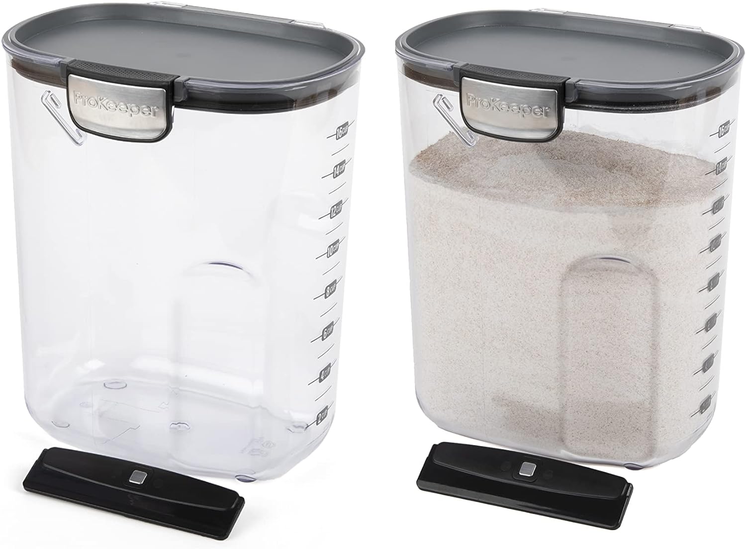 Progressive International ProKeeper+ Clear Plastic Airtight Food Baker's Kitchen Storage Organization Container Canister Set with Magnetic Accessories, 2- Piece Set (Flour 4-Quart)