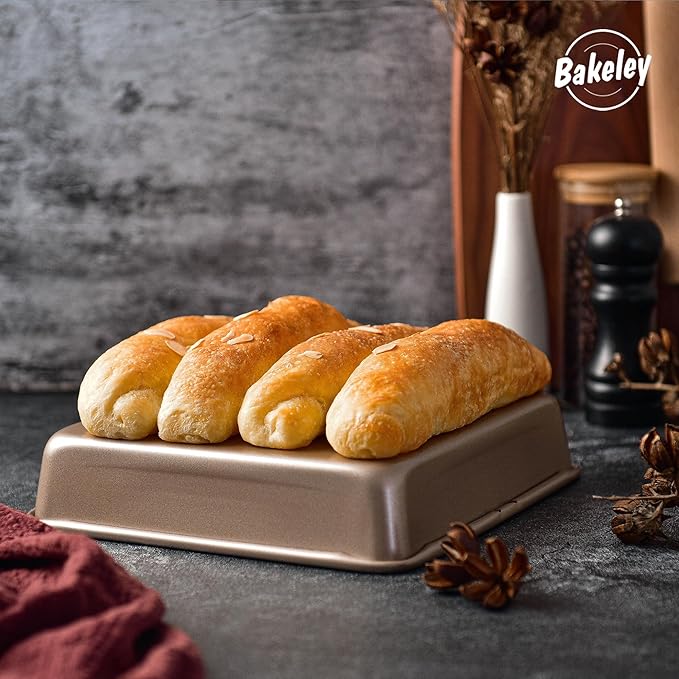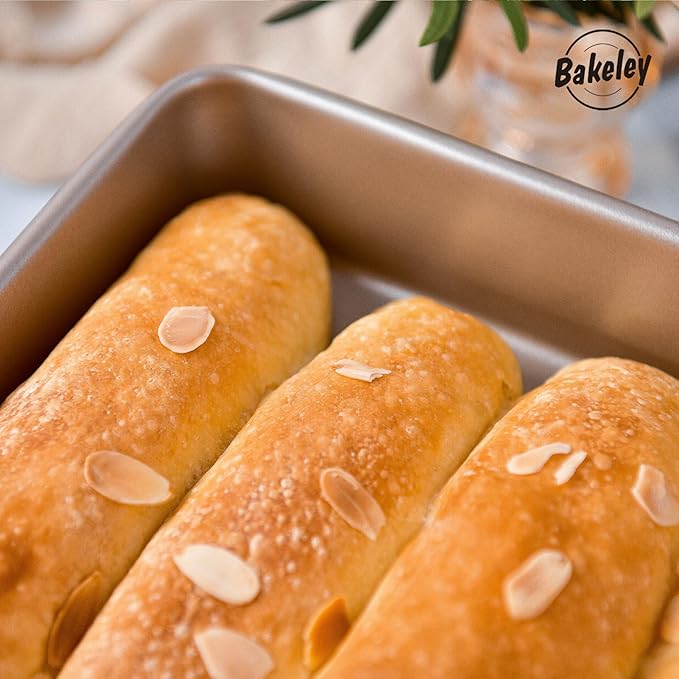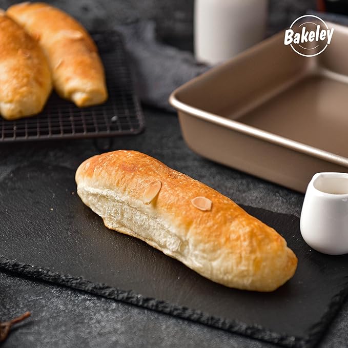 • Heavy Duty Baking Pan: Bakeley 9x9 Baking Pan adopts durable 0.8mm reinforced carbon steel (PTFE & PFOA FREE) resists bending at 450°F/230°C, the bottom of the baking tray will not deform and the edges will not curl at high temperatures in the oven