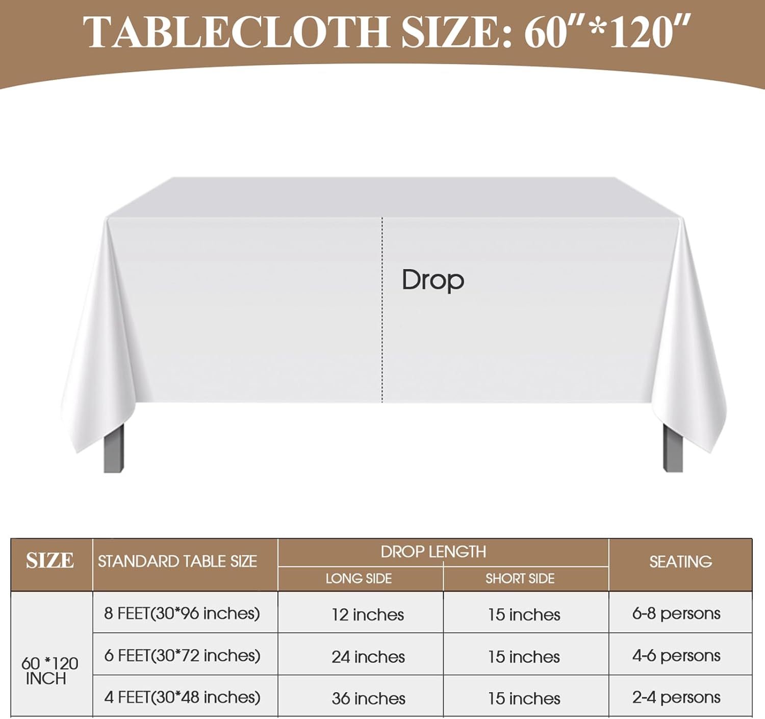 • Suitable Size: This 60*120 inch tablecloth from Aocoz is suitable for rectangular tables of 6ft and 8ft, please carefully measure the size of your table before purchasing to avoid buying an unsuitable tablecloth