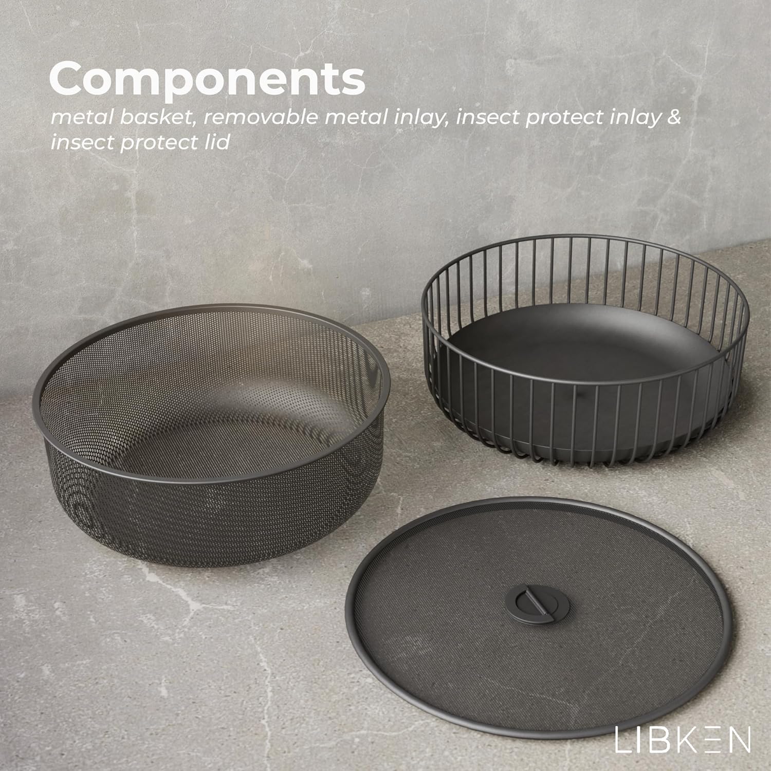 Metal Fruit Bowl with Mesh Lid and Basket - Fruit and Vegetable Holder For Kitchen Counter - Countertop Display Baskets Organizer - Bowl Storage for Veggie, Fruits, Snack, and Banana - Black