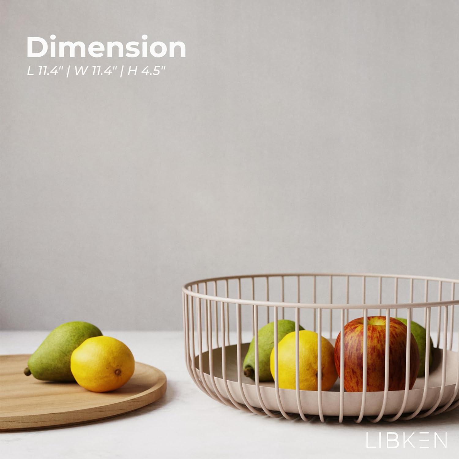 • DURABLE CONSTRUCTION: Crafted from powder-coated metal and rubber wood, this fruit basket ensures long-lasting use. The matte finish blends sophistication with quality, elevating kitchen storage.