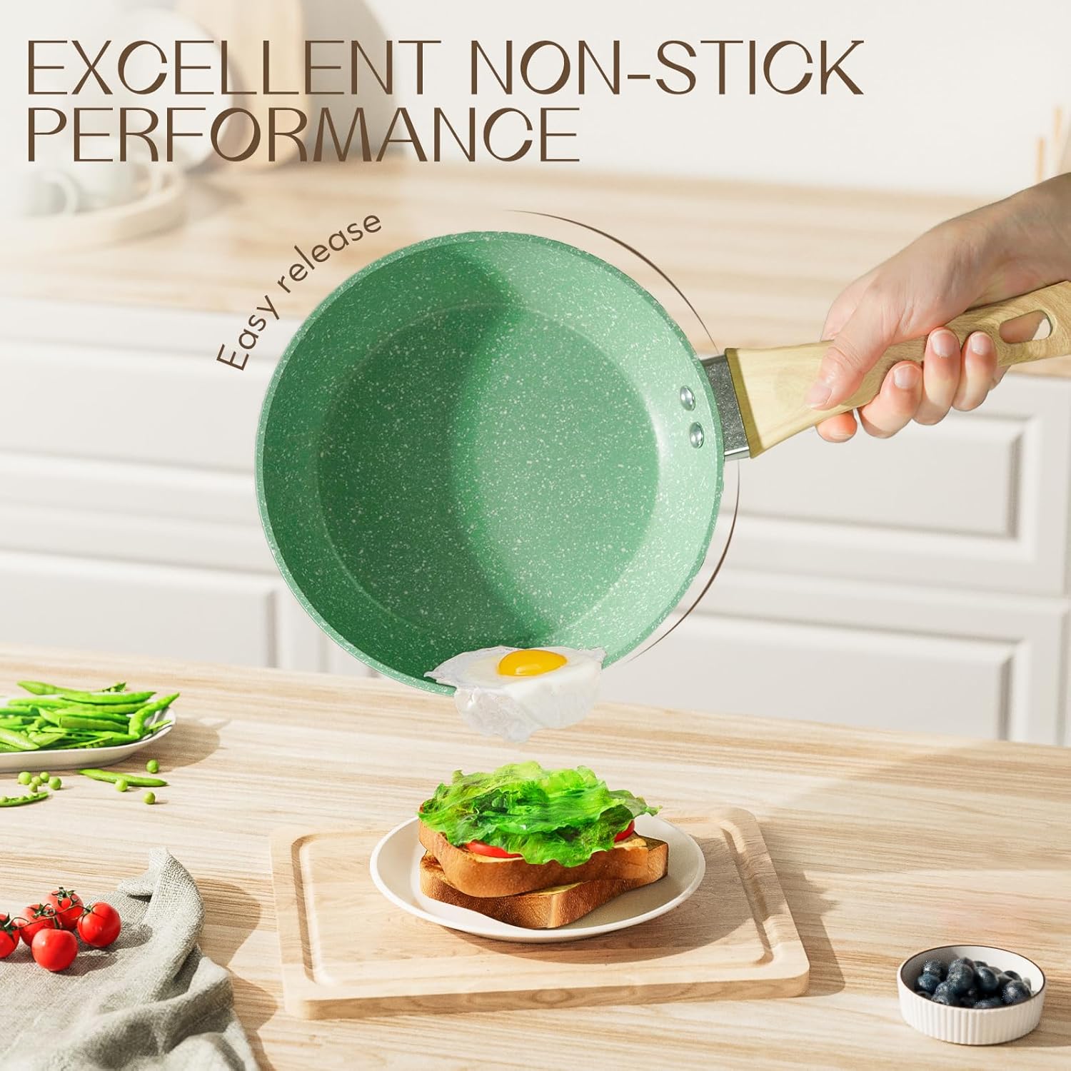 • [SAFETY & HEALTH] Innerwell's striking green speckled textured granite non-stick coating is non-toxic and free from harmful substances such as PFOA, PFOS, PTFE, CADMIUM etc. Ensuring that your everyday cooking is always safer and healthier.
