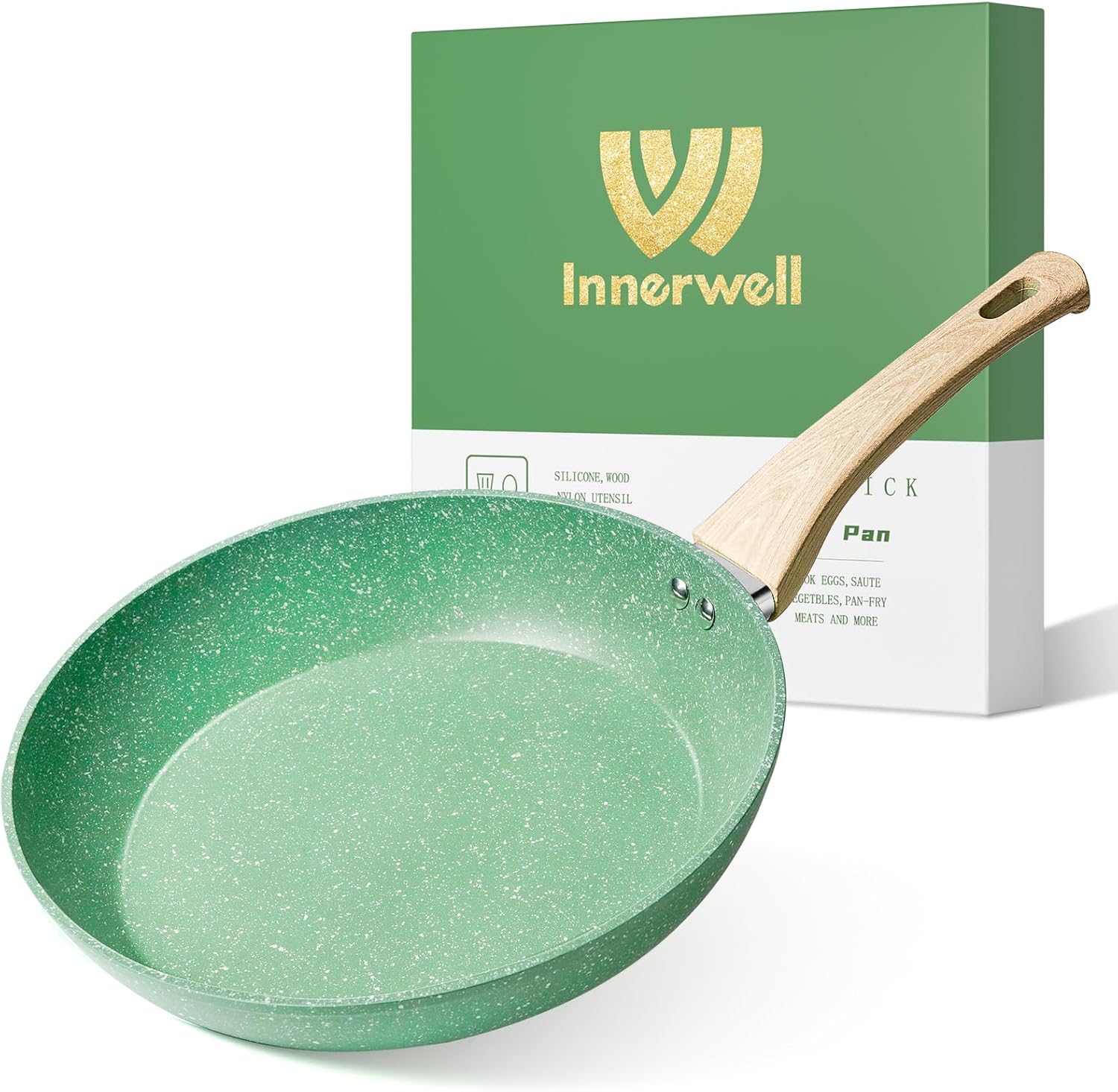 • [SAFETY & HEALTH] Innerwell's striking green speckled textured granite non-stick coating is non-toxic and free from harmful substances such as PFOA, PFOS, PTFE, CADMIUM etc. Ensuring that your everyday cooking is always safer and healthier.