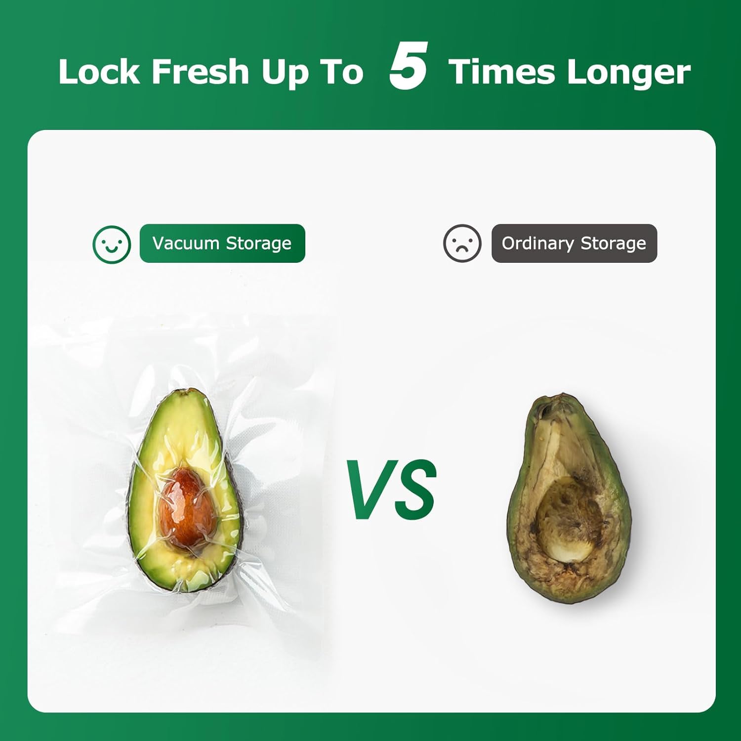 • Freshness Saver: Vacuum seal bags work with food vacuum sealer (Compatible with all types of vacuum sealer machines). It creates a vacuum environment by removing air from the bag, which helps slow down the food spoilage process and can extend the storage time of food by up to 5 times