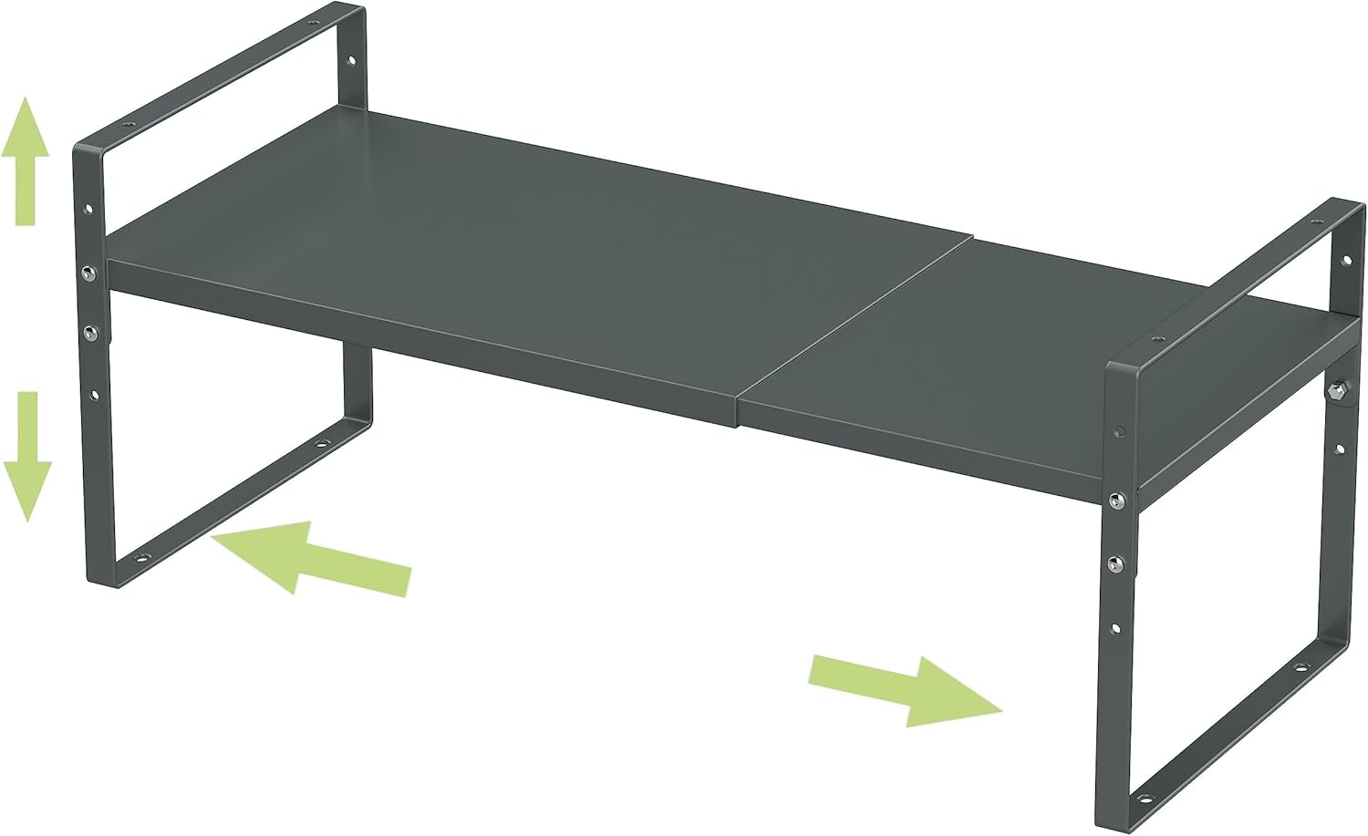 • 【DURABLE &STRONG】:Cabinet Shelf Organizers is made of sturdy metal with anti rust coating,there is a metal support rod in the middle of these cabinet shelves,it can ensures the shelf didn’t get collapse when you place some heavy items on it,the screws at the metal rod are can be loose or tight to expand the countertop shelves