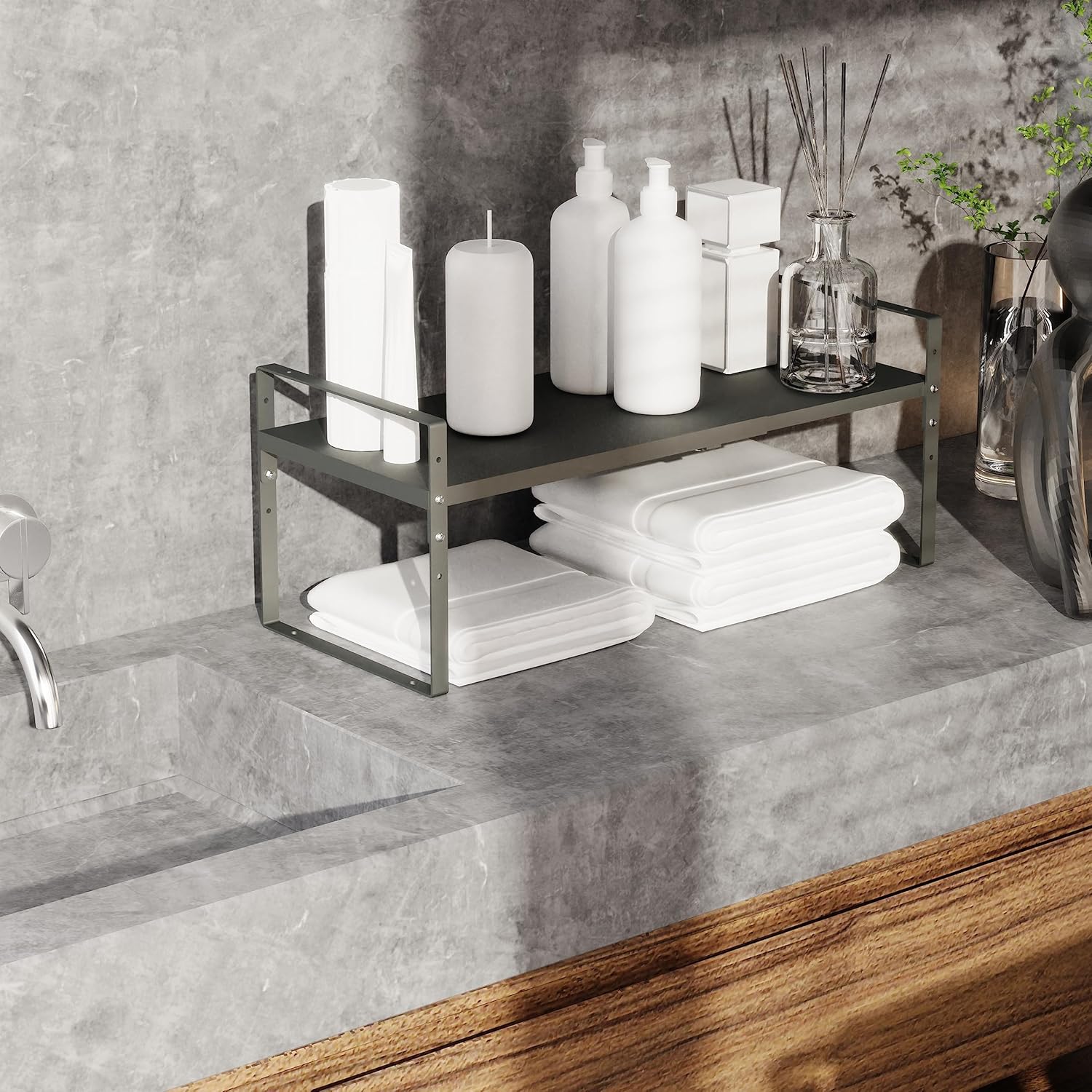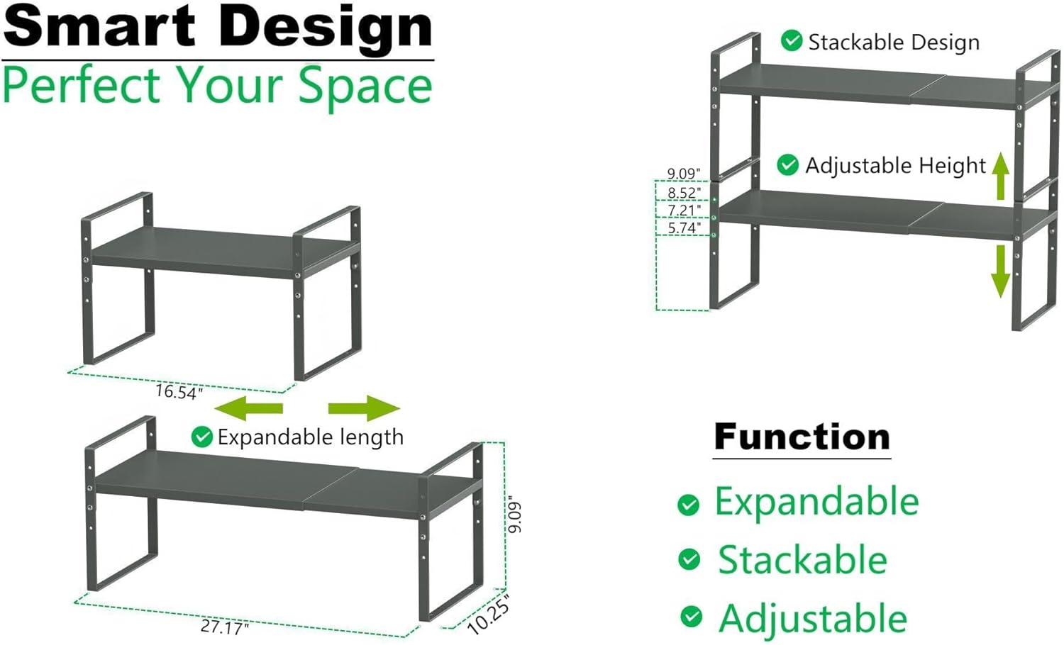 • 【EXPANDABLE】:Size:16.54” to 27.17”x 8.07/10.24” x 9.84”(LxDxH),in order to make the best use of the space,the length of the expandable shelf organizer are can be adjusted,it can be adjusted from 16.54 inches to 27.17 inches