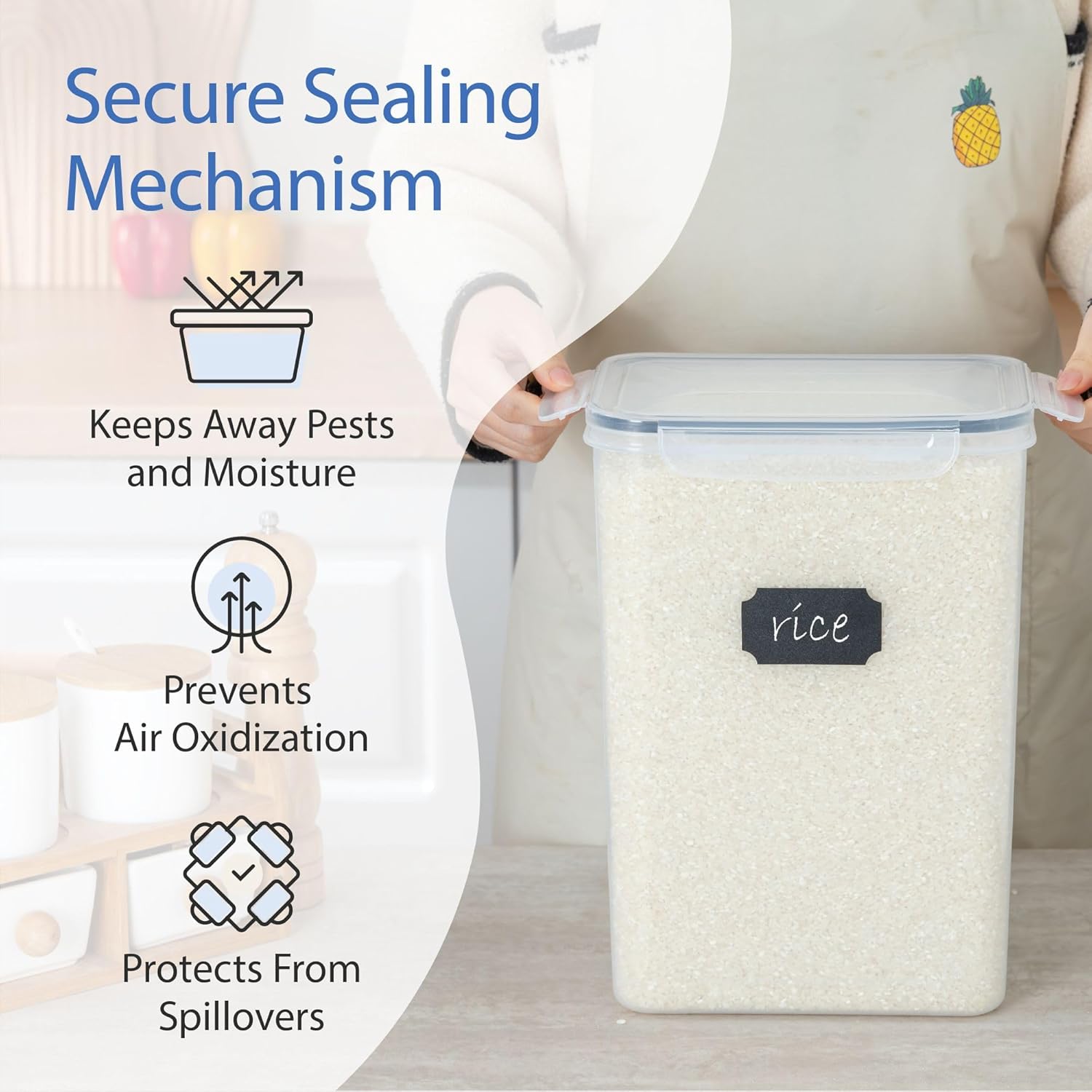 • Side-Locking Lids with Silicone Gasket. Seal in freshness with our large airtight food storage containers designed to lock out moisture and air. Our containers with lids prevent spills and keep leftovers and dry goods safe, fresh, and ready to use.