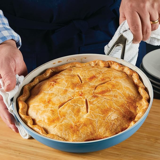 • KITCHEN TO TABLE DESIGN: Nonstick skillet is color-finished in a modern Blue Velvet hue for a standout, contemporary look from performance to presentation