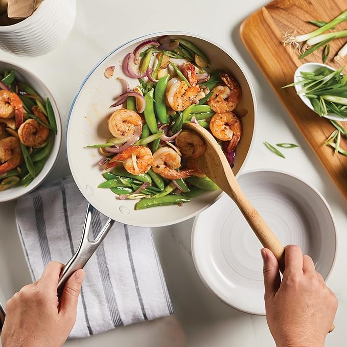 • EASY-CLEAN CERAMIC: High performance ceramic nonstick is made without PFAS, BPA, Lead, or Cadmium* for safe, consistent food release and fast, easy cleanup (*Manufacturing process does not involve adding to the product any of these substances which may otherwise be present in the environment)