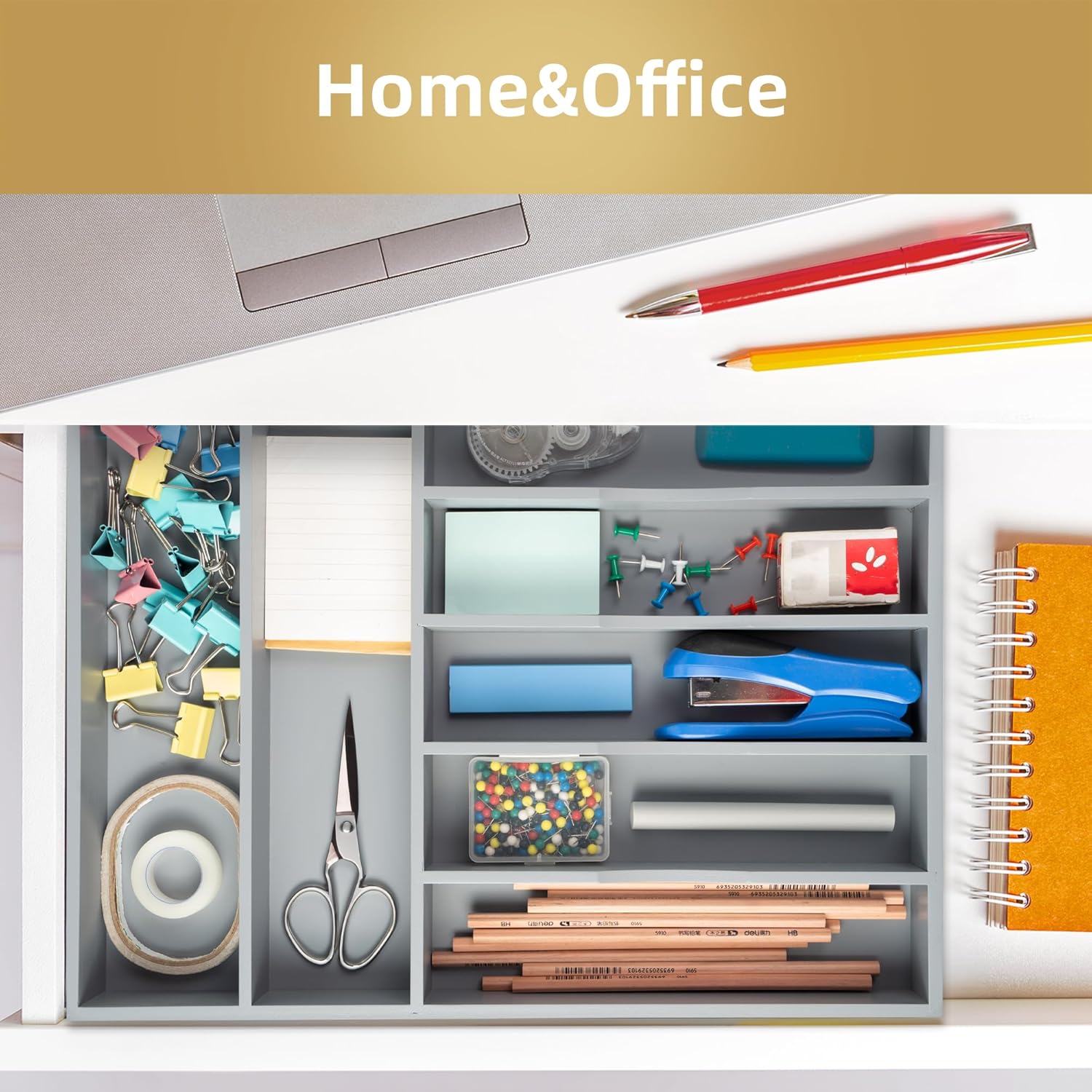 • 【Multifunctional Management】Our multi-purpose cutlery organizer is not only suitable for storing silverware, but also suitable for storing disposable tableware, sundries, cosmetics, hair accessories, repair tools, art sets, stationery. With this silverware organizer for drawer, drawers in the kitchen, bathroom, dresser, room, office can be efficiently organized. This is the best home gifts, everyone would like to have such practical gifts for drawer organizer home.