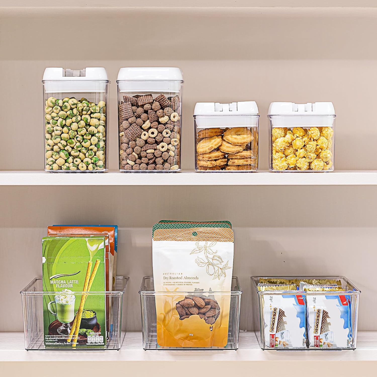 • Removable Dividers — There are 3 removable dividers in each food storage organizer bin, making it easy to separate and organize your items, you can quickly see and grab what you need.