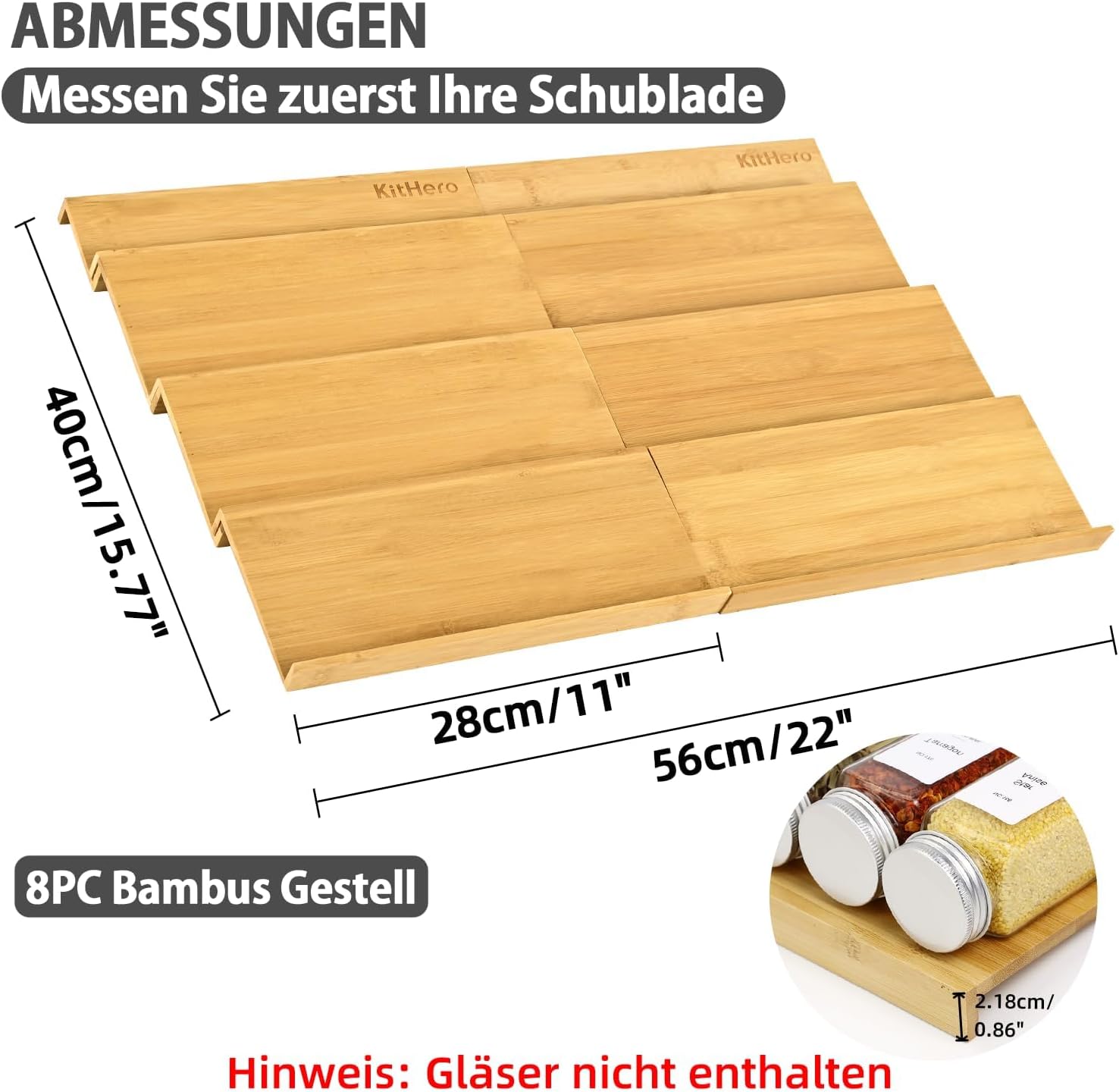 Spice Drawer Organzier,4 Tiers- 8Pcs Bamboo Spice Rack Tray Insert for Cabinet Drawer Countertop, Kitchen Seasoning Storage Drawer Organization,22" Wide x 15.8" Deep (Hold UP To 48 Jars