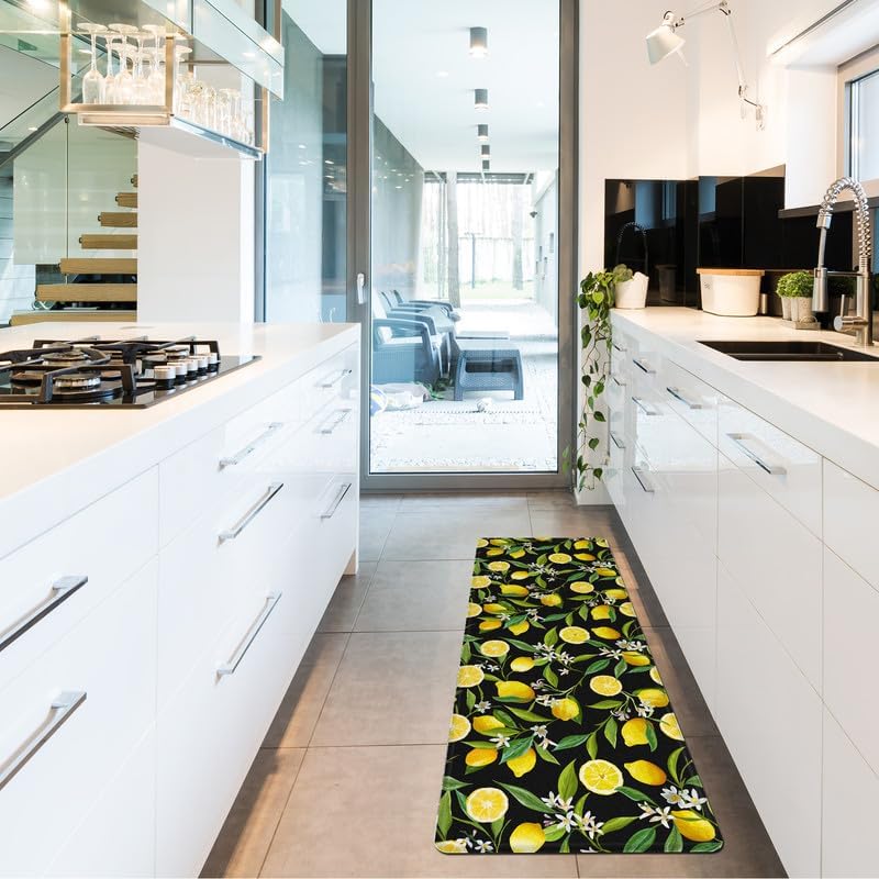 Lemon Kitchen Mats for Floor - Anti Fatigue Mats for Kitchen Floor, Cushioned Non-Skid Washable Memory Foam Rug for Office, Sink, Laundry (17.3"×47"×0.47") Black