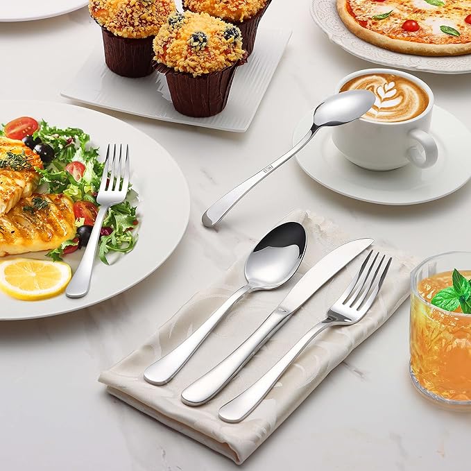 • Healthy and Durable: the silverware is made of food-grade stainless steel, no harmful substances to ensure safety and health, corrosion and rust resistant to serve you for years, and dishwasher safe to save your time