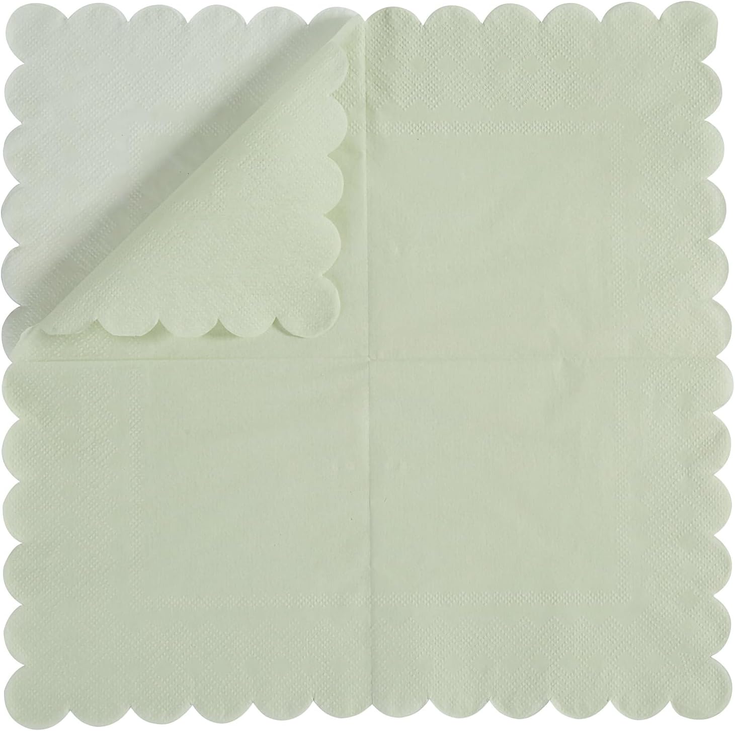 100 Pack Cocktail Napkin 2-Ply Scalloped Edged Dessert Napkins Folded 5 x 5 Inches Disposable Napkins for Dinner Wedding Birthday Party Bridal Anniversary Reception Event (Sage Green)