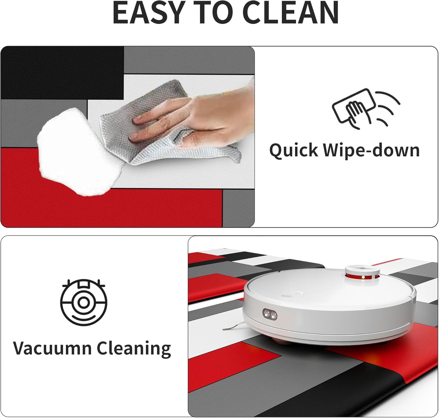 • COMFORT: The FYATHM 0.47 inch extra thick anti fatigue mat is made out of 100% PVC material, ergonomically designed for your comfort and are perfect choice for for people who spends a lot of time on their feet at work or at home. The anti fatigue kitchen mat is designed to relieve discomfort in the legs, back and lower back caused by long periods of standing.