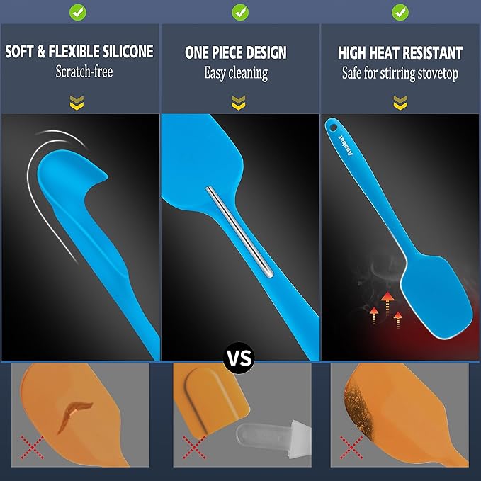 • SEAMLESS ONE-PIECES DESIGN, EASY TO CLEAN - Anaeat spatulas are seamless design that are dishwasher safe, easy to hand washing, and ONE-PIECES DESIGN designed to prevent the build-up of food and grime which allows for safe and healthy cooking.