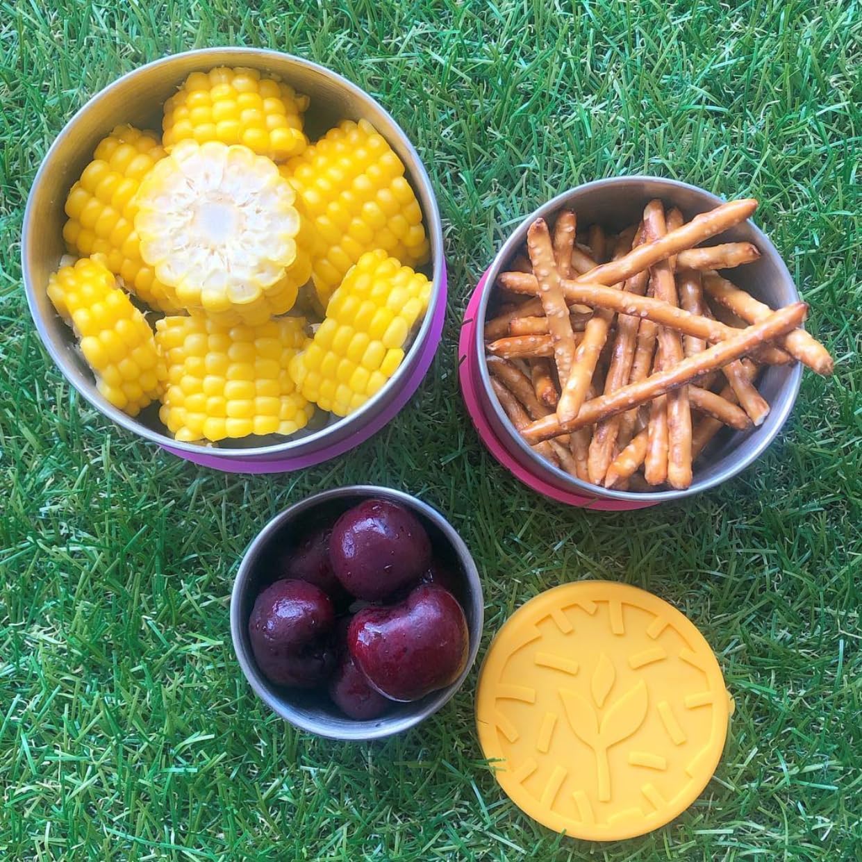 TAVVA 4 X 3 oz Stainless Steel Containers with Lids - Leakproof w/Silicone Lids - BPA Free - Dishwasher & Freezer Safe - Portable & Reusable - Small Snack Cups Dressing Containers