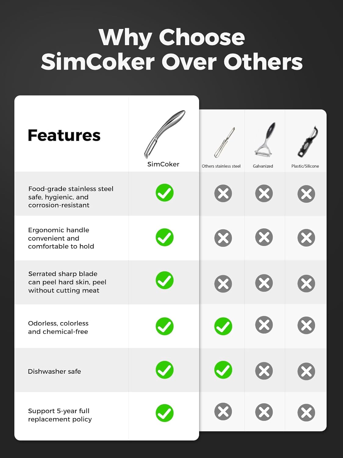 • 5-Year Warranty & 100% Satisfaction:Includes a 5-year warranty and satisfaction guarantee. Peels fruits and vegetables smoothly, ensuring a hassle-free cooking experience