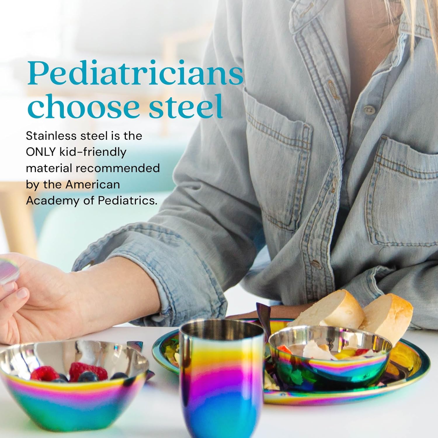 • 𝐏𝐞𝐝𝐢𝐚𝐭𝐫𝐢𝐜𝐢𝐚𝐧 𝐃𝐞𝐬𝐢𝐠𝐧𝐞𝐝 & 𝐒𝐚𝐟𝐞: Made from 304 18/8 food-grade stainless steel kids plates, this single rainbow plate is free from BPA, PVC, phthalates, melamine, and lead. These kids plates non toxic protect from chemical leaching. The perfect stainless steel plates for kids for eco-conscious parents seeking the best non toxic toddler plates with a vibrant, playful finish