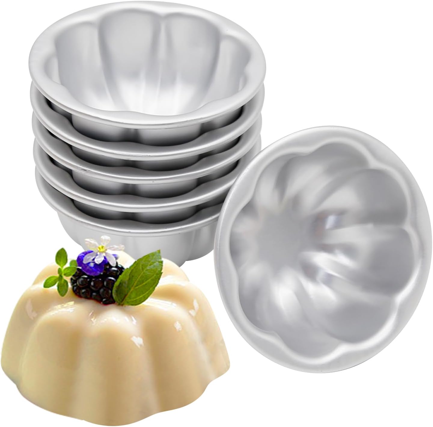 6 Pcs Egg Tart Molds Aluminum Alloy Cake Tartlets Baking Tool Flower Shape Non-stick Egg Tart Molds 3.5 X1.6inch Muffin Cupcake Pudding Baking Cup Maker