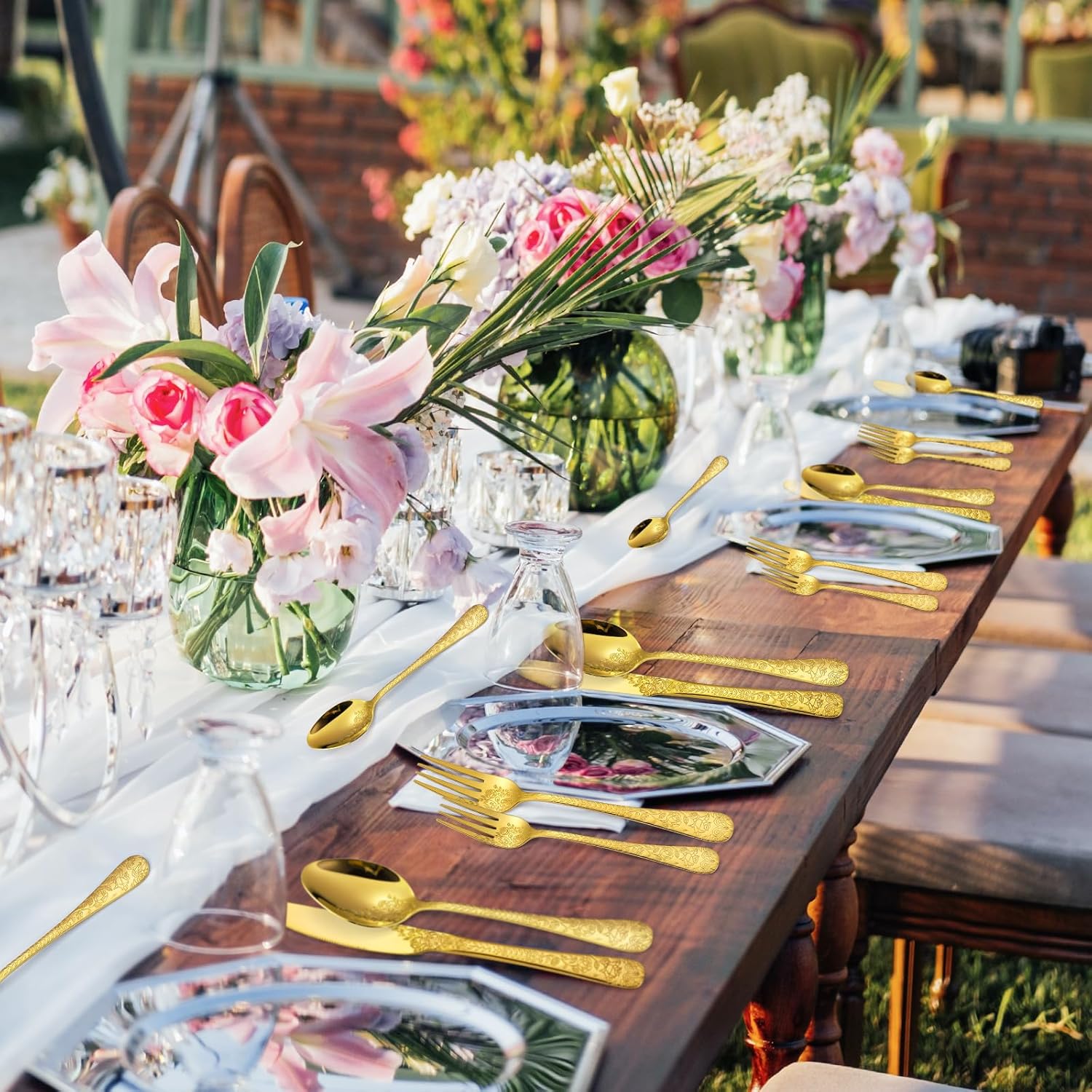 • DESIGNED FOR DAILY USE: This vintage gold silverware features a vintage floral relief design that is designed specifically for daily use. Made with quality materials, this set is durable and adds a touch of elegance to any dining table COMPLETE SET FOR MULTIPLE GUESTS: This Gold Floral Silverware Set is a vintage-inspired cutlery set featuring floral relief design. It comes complete with all the pieces you need to host multiple guests and elevate your dining experience