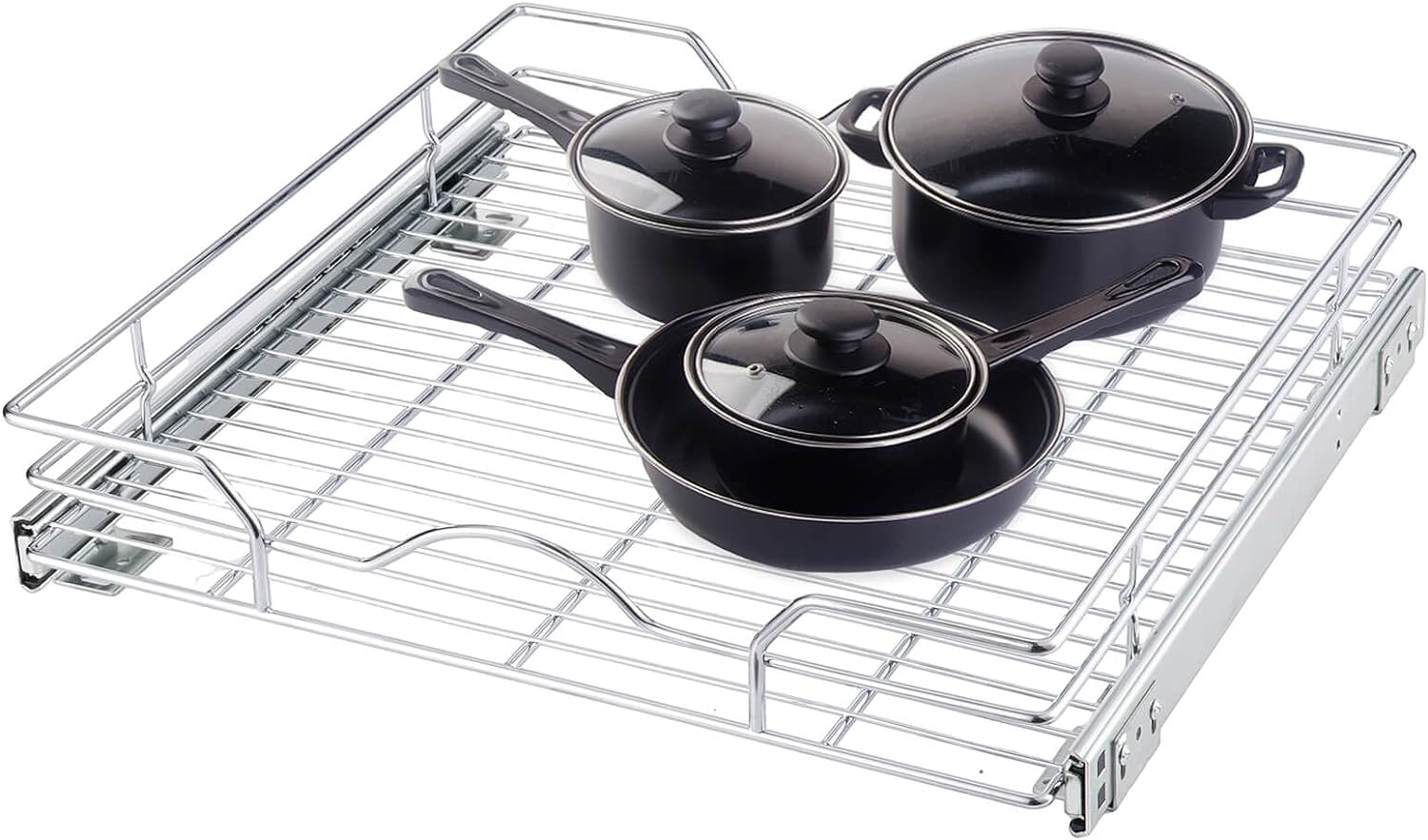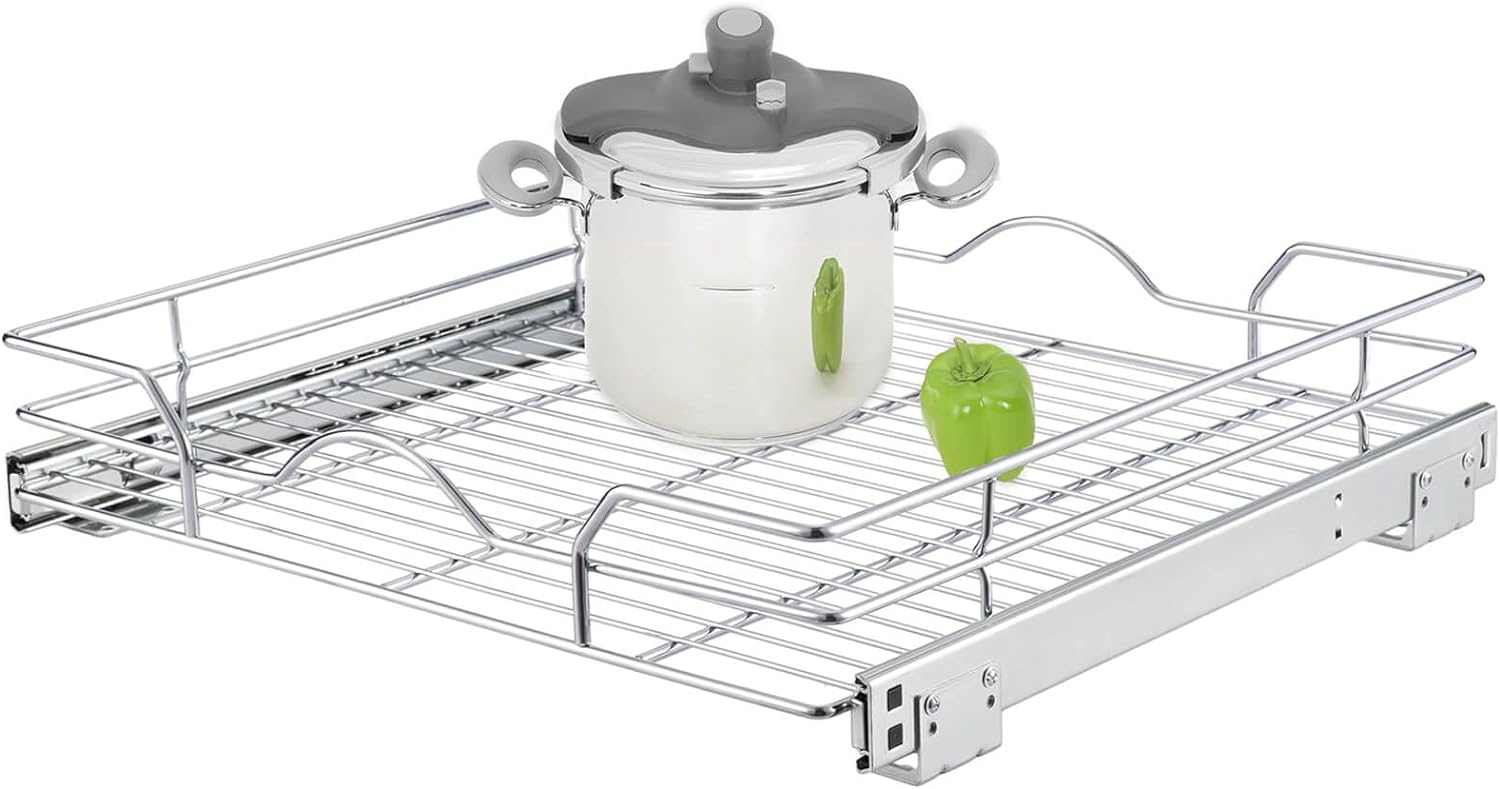 OCG Pull Out Cabinet Organizer (20.75" W x 17" D), Pull Out Shelves 1 Tier, Cabinet Slide Out Shelves for Base Cabinet Organization in Kitchen Bathroom Pantry, Bottom Mount, Chrome Finish