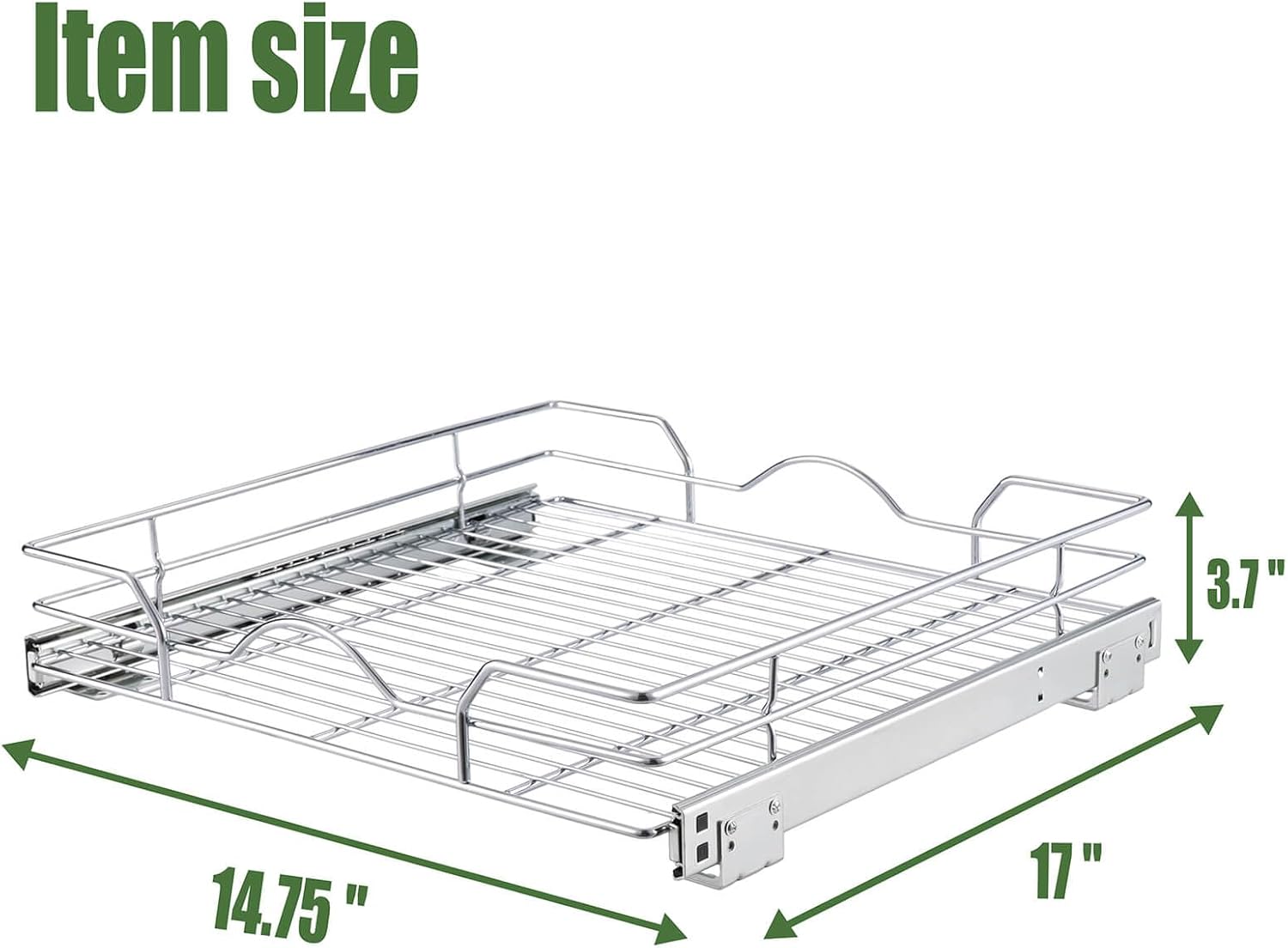 • The Size of Cabinet Pull Out Shelves:14.75"W x 17"D x 3.7"H. This sliding cabinet organizer needs at least 16 inch wide and larger cabinet openings. Min cabinet interior depth: 18.5 inch.