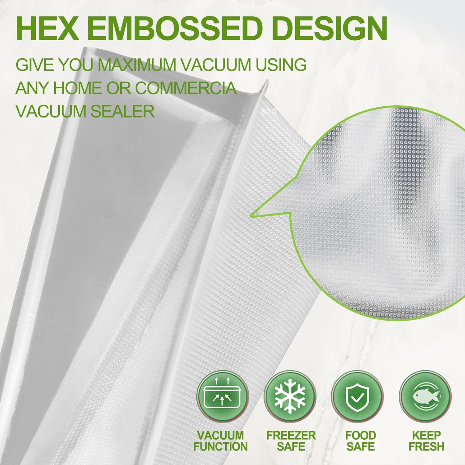 • 【DURABLE AND PUNCTURE-PROOF】Our vacuum sealer bags are heavy-duty, designed with specially designed channels that remove oxygen from the bags, which maintains the food’s moisture and flavor while creating an airtight barrier that locks out air, preventing freezer burn or spoilage. These bags are ideal for sous vide cooking and offer ultimate protection for your food