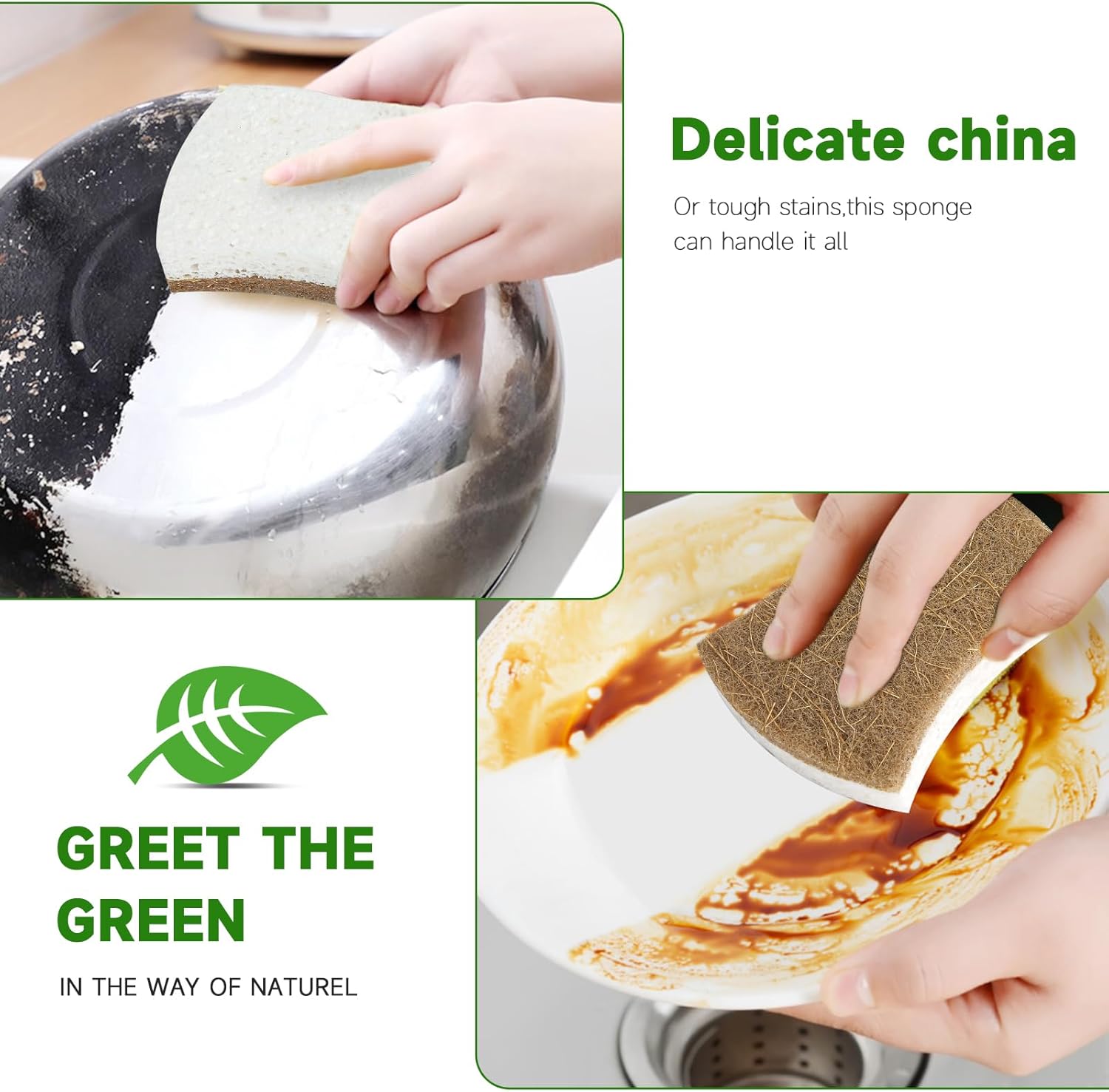 • NATURAL SPONGES FOR DISHES - Dish sponges are made with biodegradable white cellulose and scrubbers are a mix of 100% natural and recycled fibers. These plant-based kitchen sponges are a sure way to green-up your kitchen!