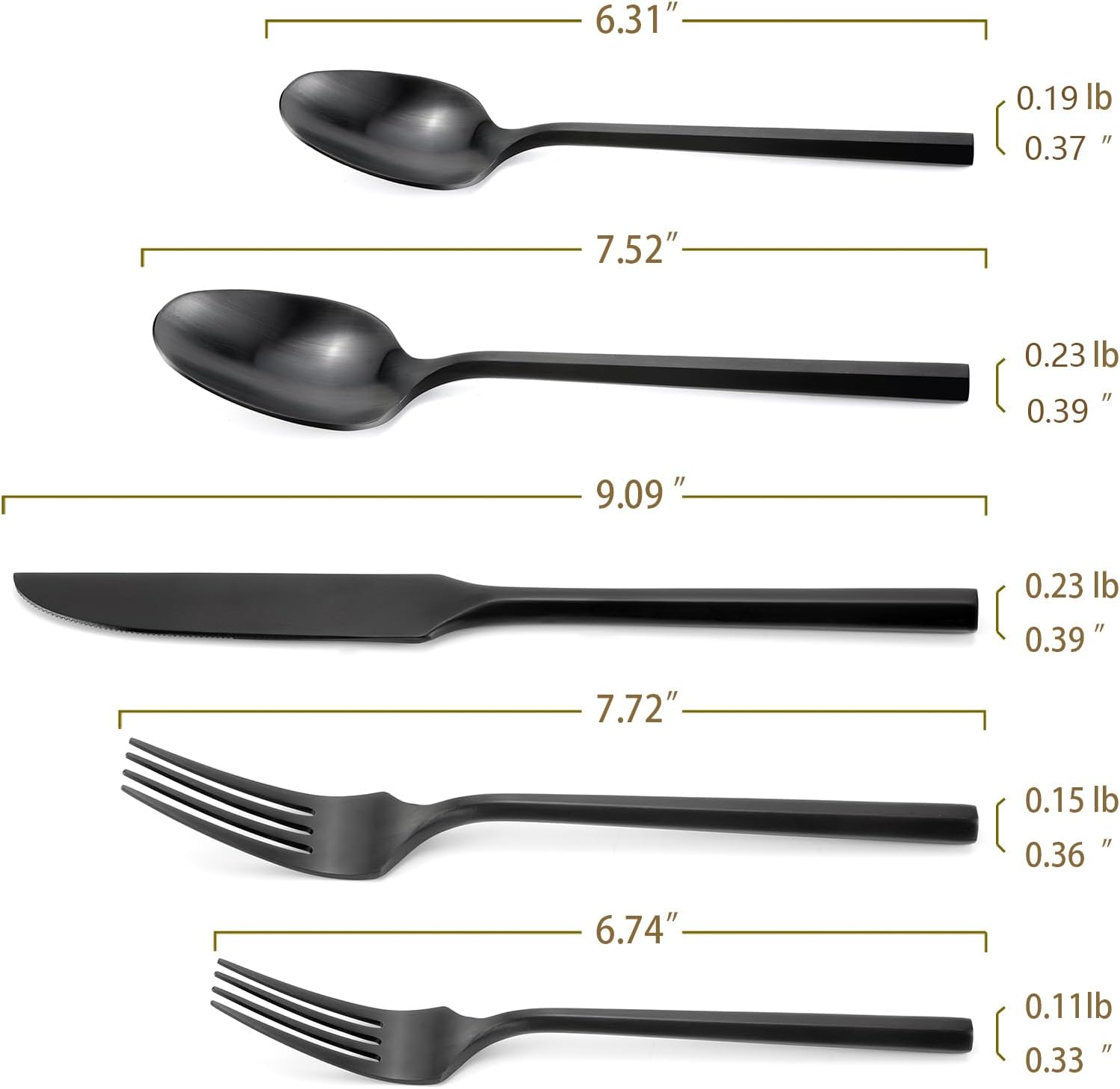 DEACORY Silverware Set Flatware Set Matte Black Cutlery Set Brushed Finished Hexagon Handle Heavy Stainless Steel 40 Pieces Dishwasher Safe Service for 8