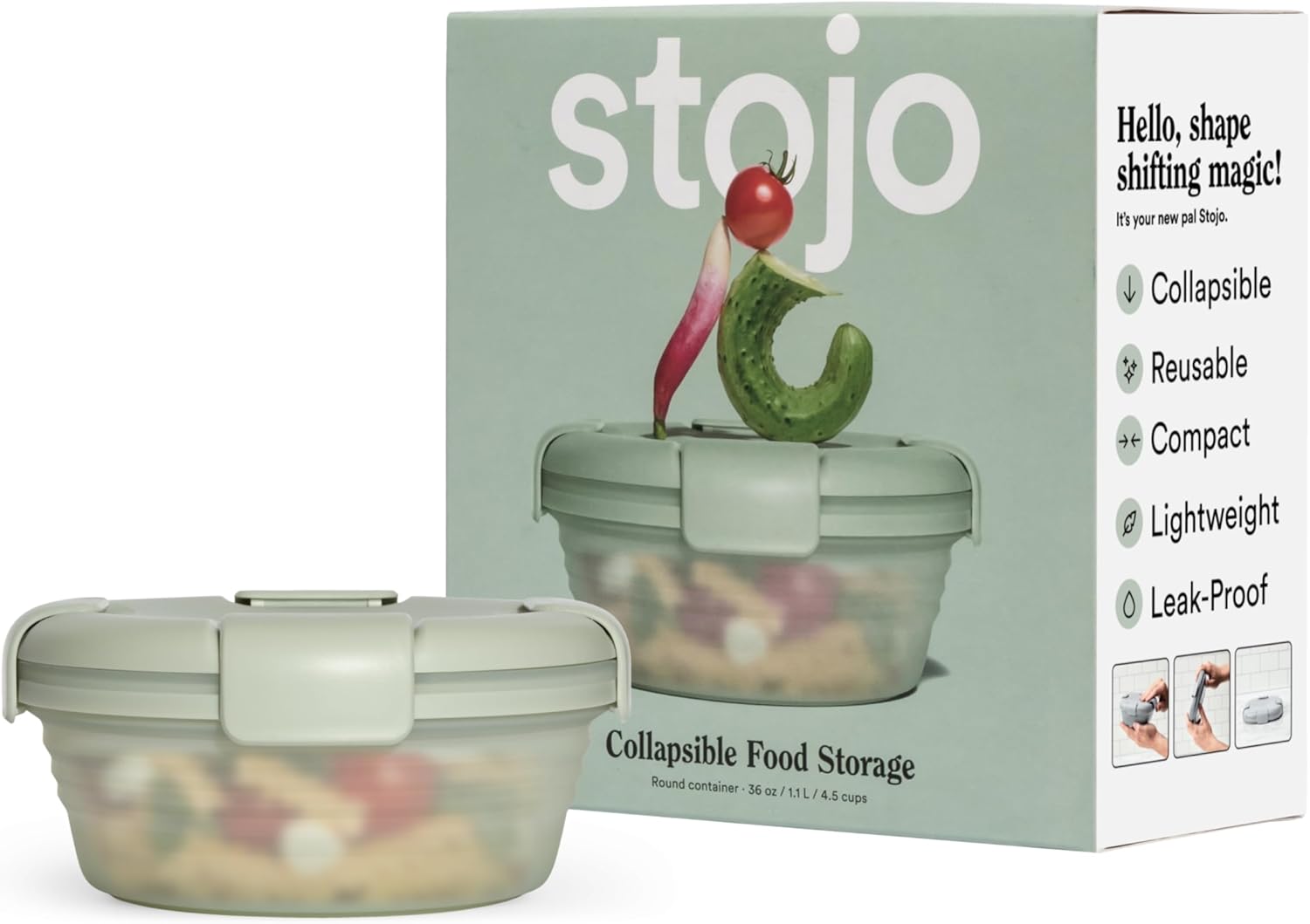 • Collapsible bowl: It’s literally never been easier (or more fun) to prep, store, and take food on the go! This compact bowl collapses down to just 1.3 inches. The 36 oz Stojo Bowl holds up to 4.5 cups,and is made for the kitchen as much as the commute. It stores nested and flat to save space, then pops open to upgrade your meal prep, leftovers, and work lunches. This Carbon Grey container is going to look right at home in your kitchen cabinet.