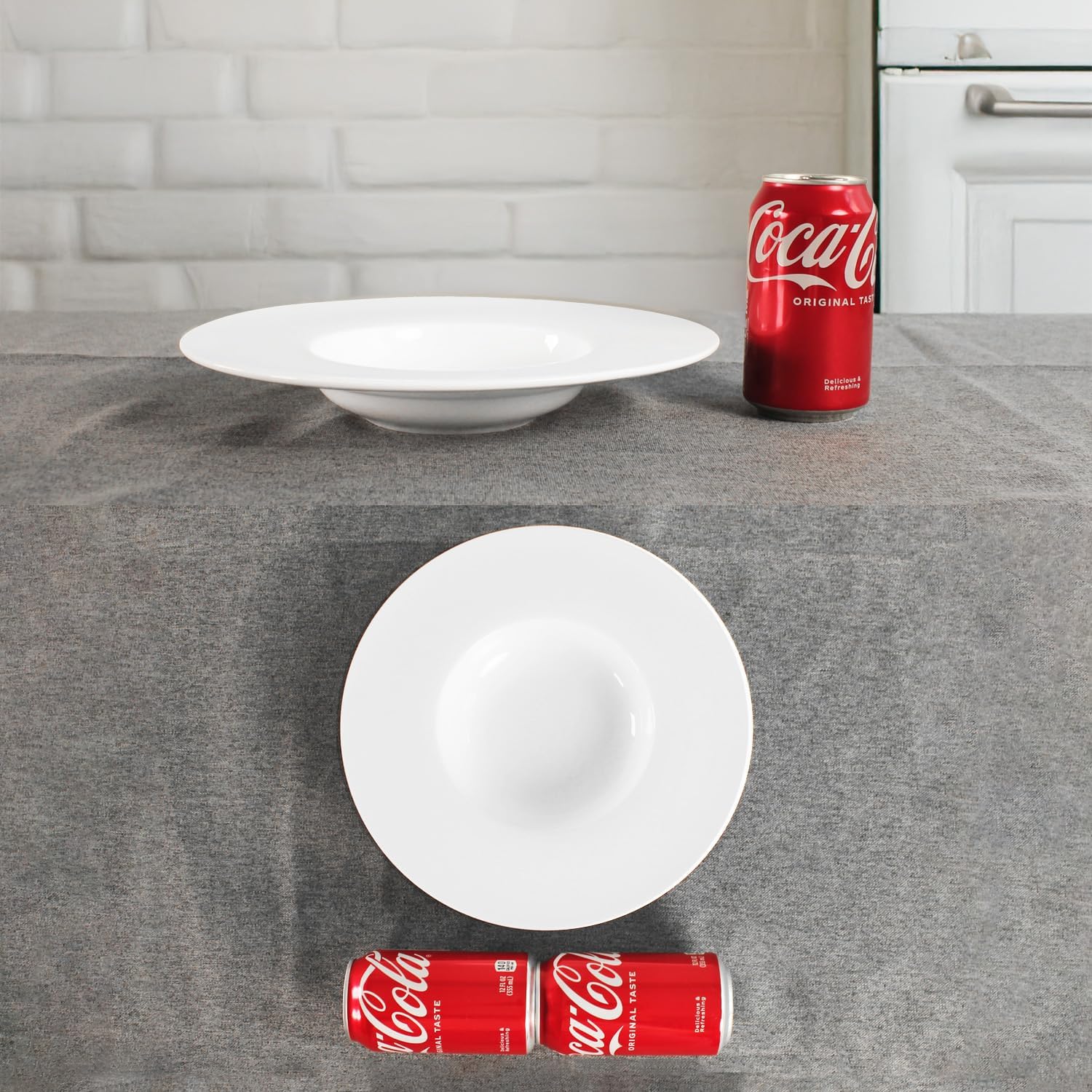 • PERFECT SIZE - Wide Rimmed Soup Bowl 10.85" x 1.9" Inch , Plate Center Bowl Size: 5.5", Normal Capacity: 9 oz. These soup bowls are a favorite choice for restaurants, hotels, homes and chefs. you can serve hearty portions of soup, pasta, salad, vegetables, cereal, dessert, etc.