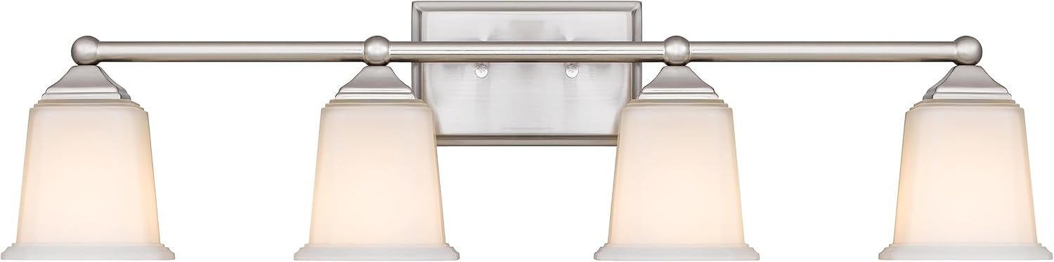 Nox Vintage 4-Light Vanity Light Modern Wall Sconce Lighting Brushed Nickel with White Glass Shade for Bathroom, Hallway, Entryway, Kitchen, Mirror, Laundry Room