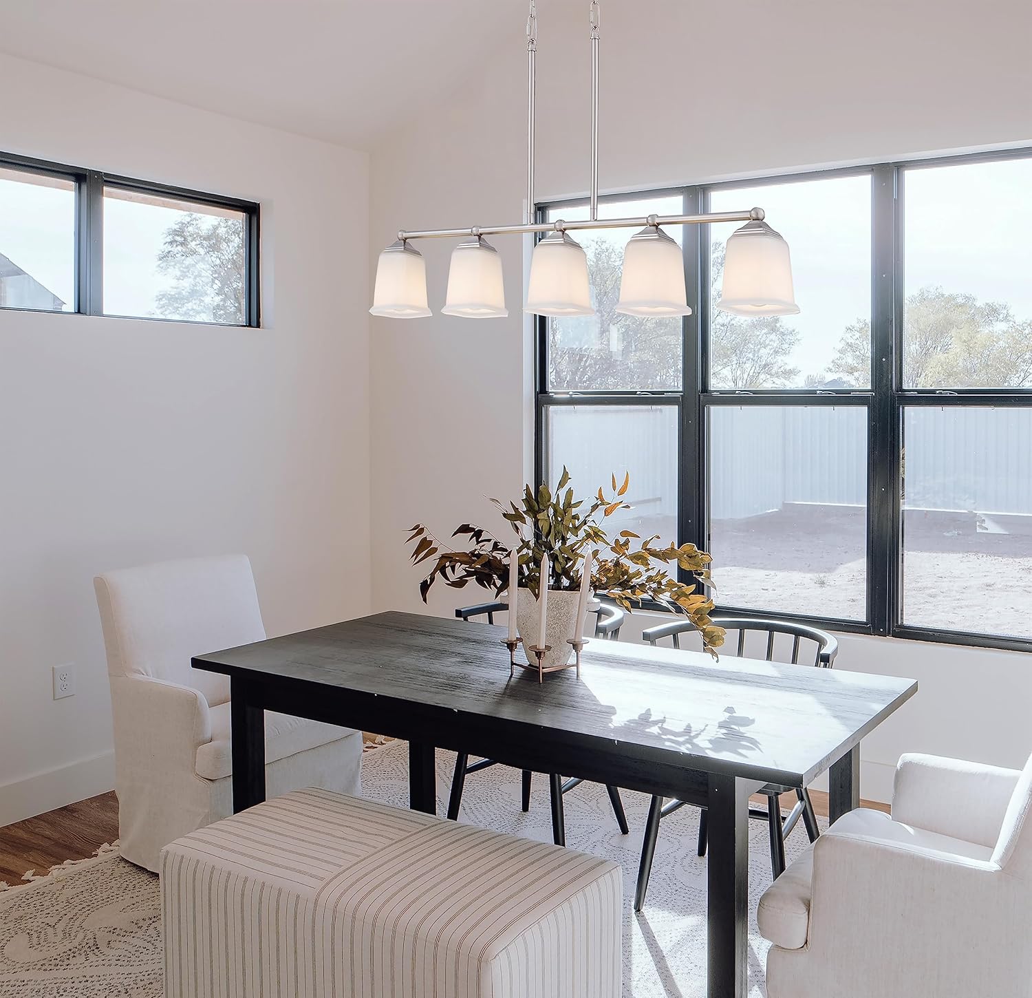 Nox Vintage 5-Light Chandelier Island Pendant Light with Brushed Nickel White Glass for Dining Room, Kitchen Island, Industrial, Vintage Decor