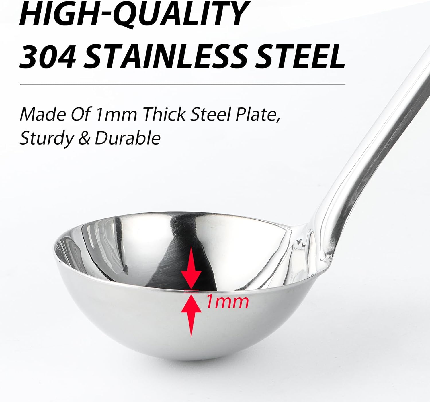 Soup Ladle, 2 oz Ladle Stainless Steel for Serving and Cooking, Small Ladles Spoon with Heat-proof Handle, Durable Construction, 13.4 inch, Silver