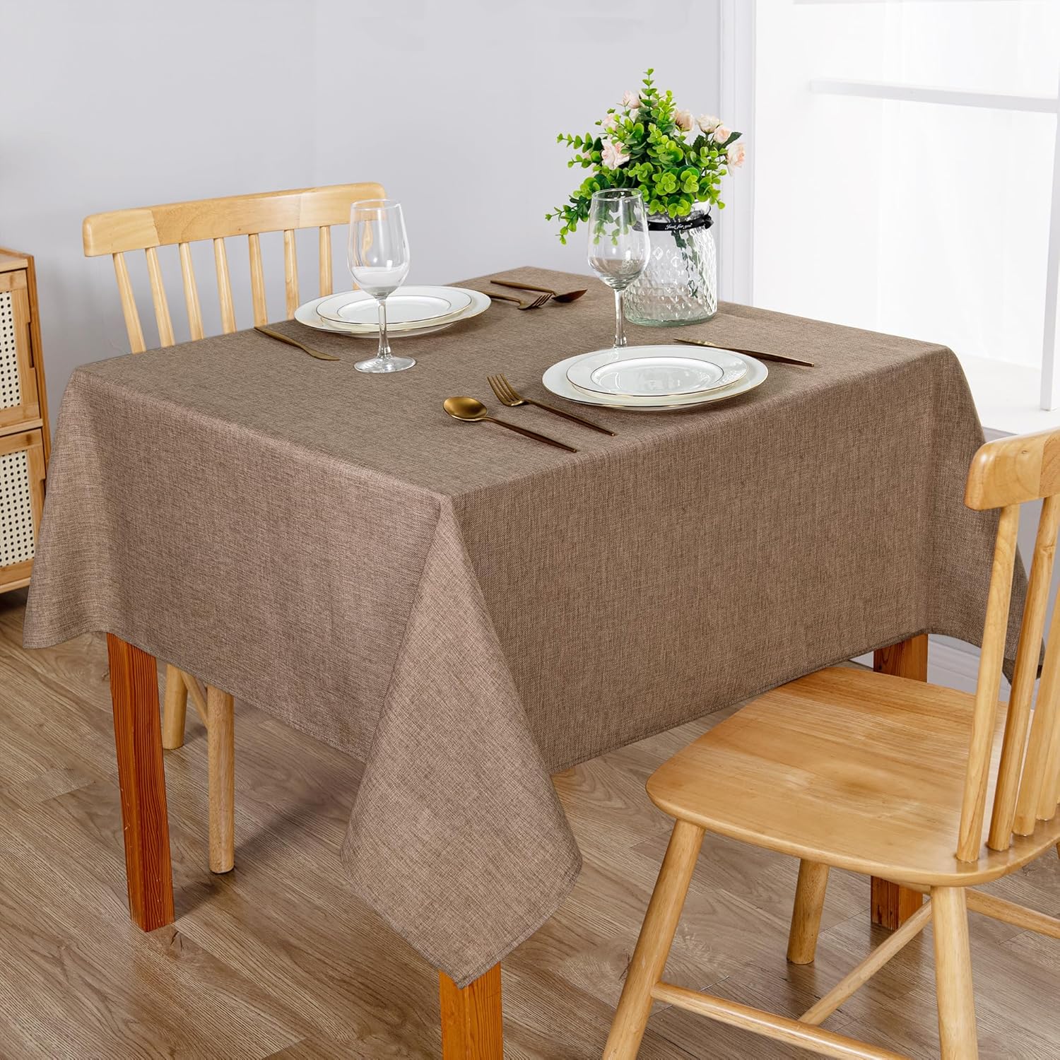 Hiasan 2 Pack Faux Linen Square Tablecloth - Wrinkle and Stain Resistant Washable Table Cloth for Kitchen Dining Room Holiday Table Cover for Party Dinner, Khaki, 70 x 70 Inch