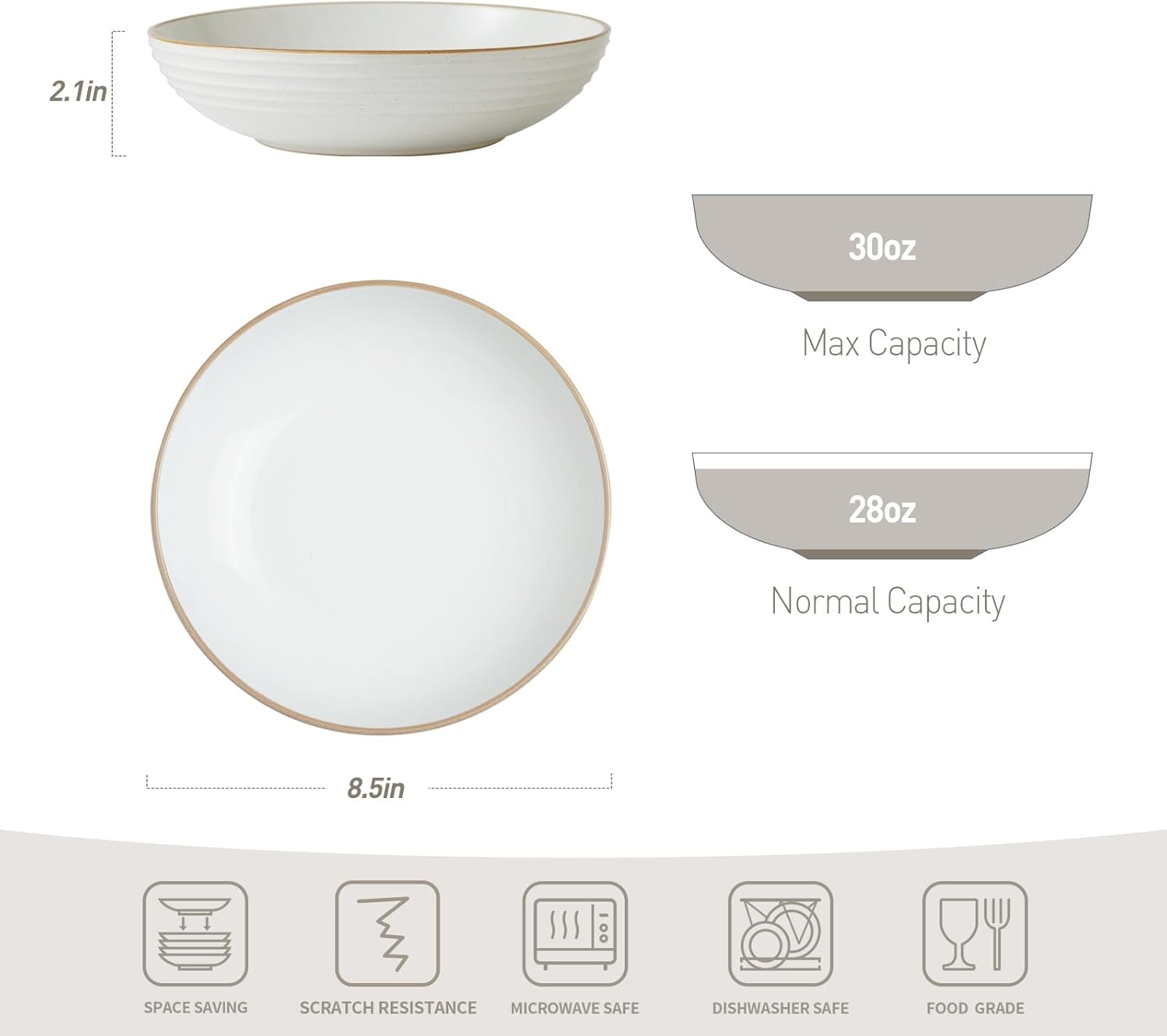• 【Pasta Bowls Set of 4】30oz capacity can hold contents both solid and liquid, perfect for pasta, soup, dessert, ice cream, salad and so on.