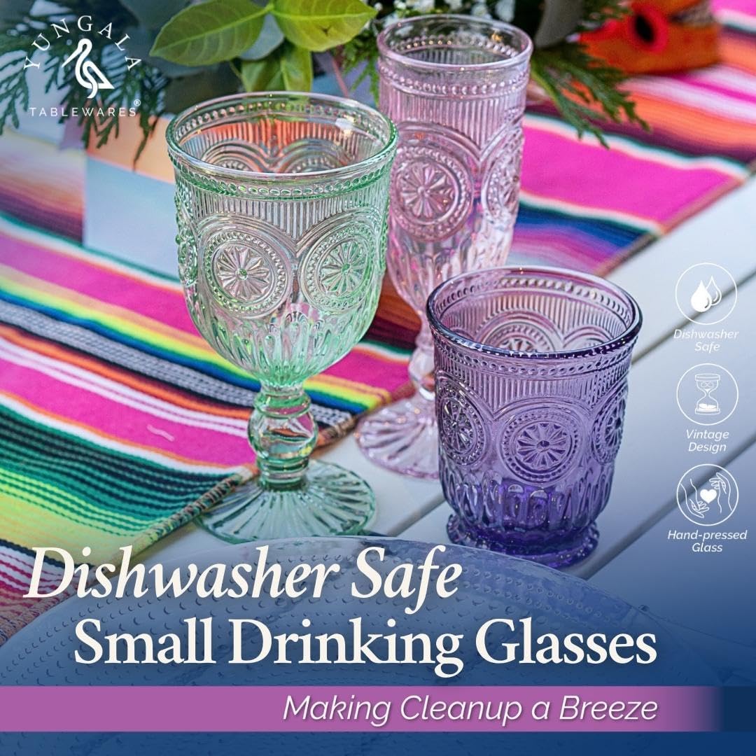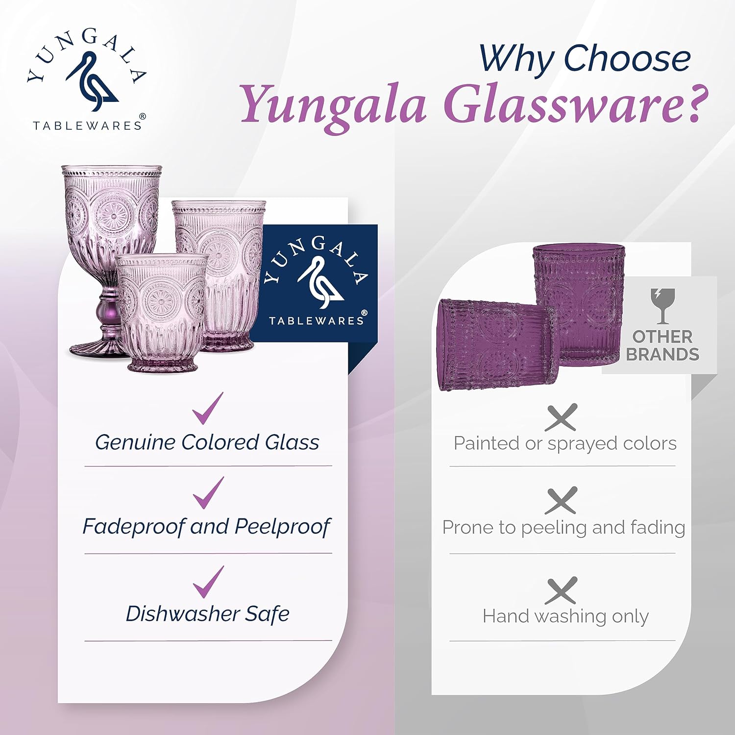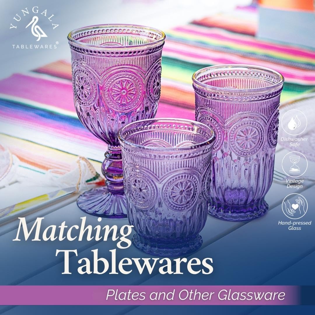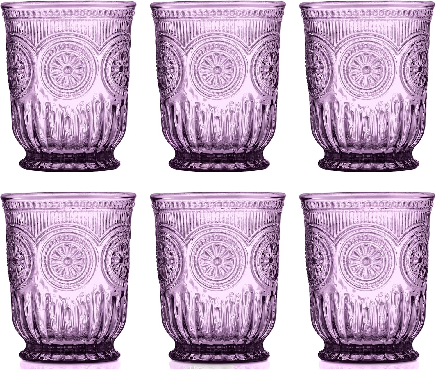 Yungala Purple Glassware, set of 6 purple drinking glasses small textured colored vintage glass cups 8 oz purple water glasses