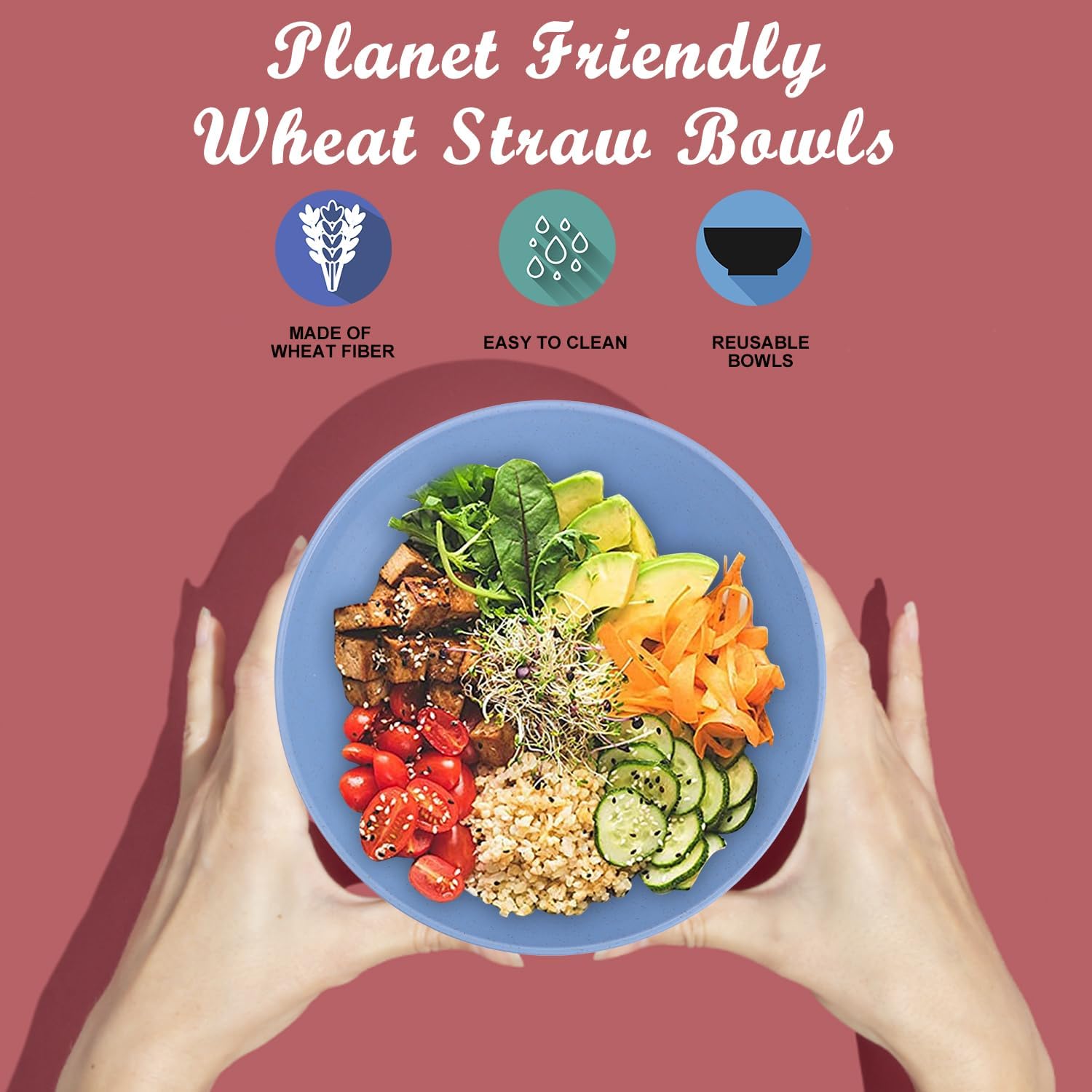 • 🌾【More Thick & Large Capacity】The wheat straw bowls are designed with thicker and smooth round edges which gives you a good touch and prevent deformation.Our wheat straw bowls set has ideal shape and antiskid stripe which avoid spilling your food. Additionally, it is perfect for cereal, salad, fruit, rice, noodle and so on.
