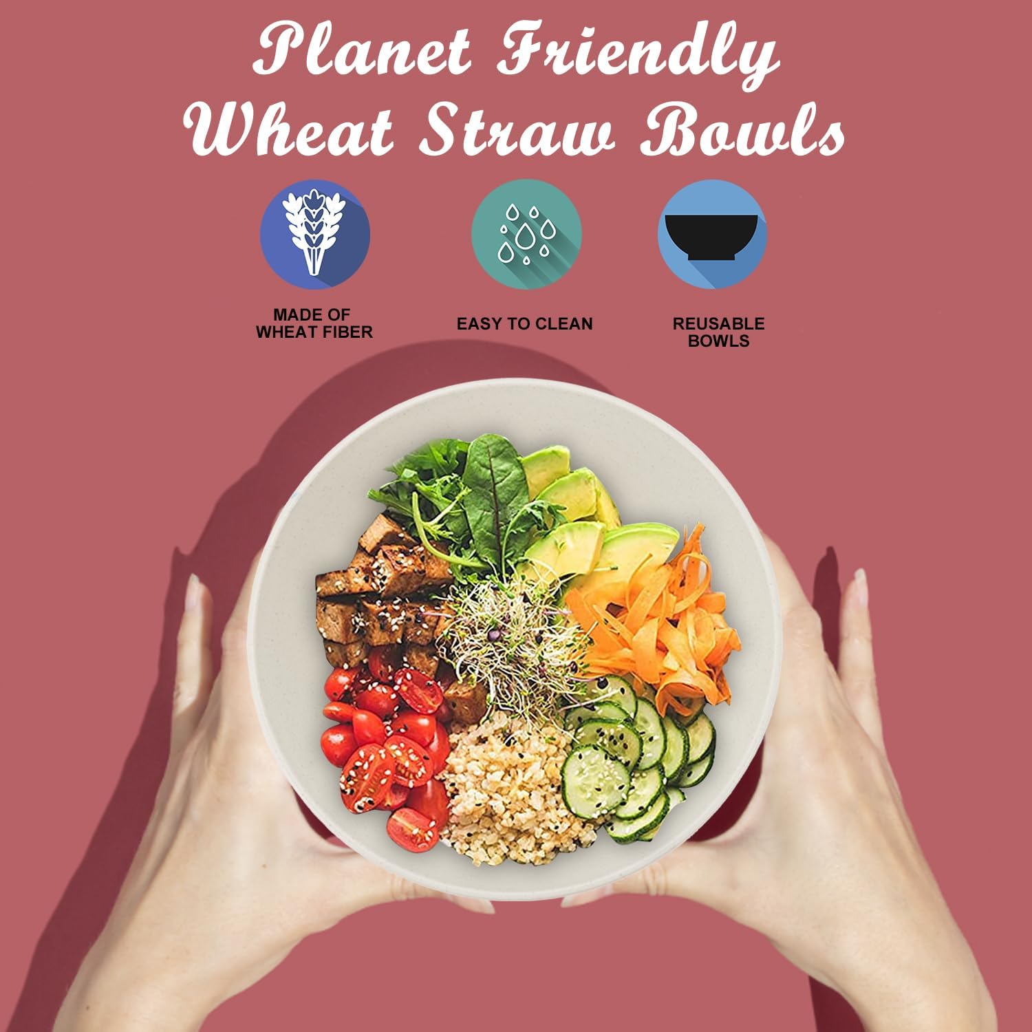 • 🌾【More Thick & Large Capacity】The wheat straw bowls are designed with thicker and smooth round edges which gives you a good touch and prevent deformation.Our wheat straw bowls set has ideal shape and antiskid stripe which avoid spilling your food. Additionally, it is perfect for cereal, salad, fruit, rice, noodle and so on.