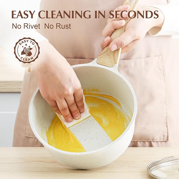 • Safe & Healthy - SENSARTE ceramic coating saucepan is free of PFAS, PFOA, lead, and cadmium. Safe cooking for your family and healthier diet with less oil.