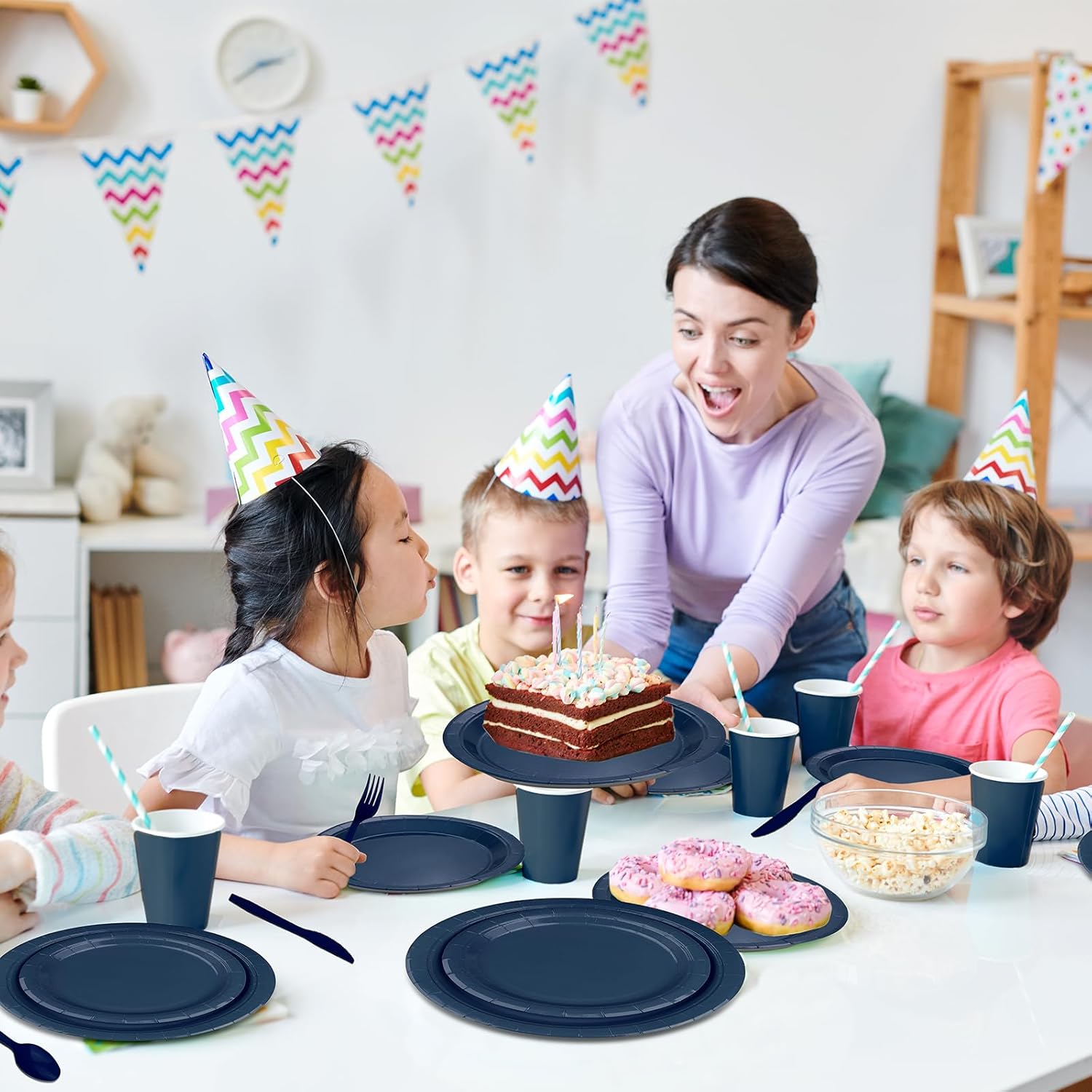 • Convenient & Easy Clean up: Our disposable navy blue party plates supplies are good for you to enjoy the party . When the party is over, you can just throw it away save your time. Party plates and napkins make it easy to create a clean party atmosphere