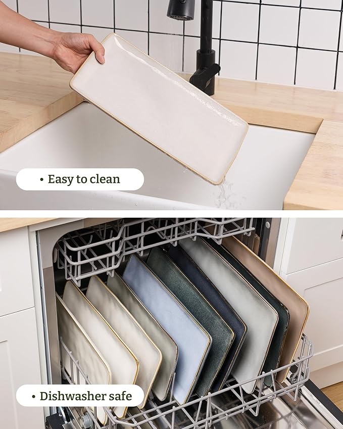• Dishwasher and Microwave Safe: Famiware rectangle plates are made of premium stoneware. Each serving platters and trays is Dishwasher and microwave safe.