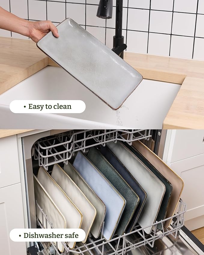 • Dishwasher and Microwave Safe: Famiware rectangle plates are made of premium stoneware. Each serving platters and trays is Dishwasher and microwave safe.